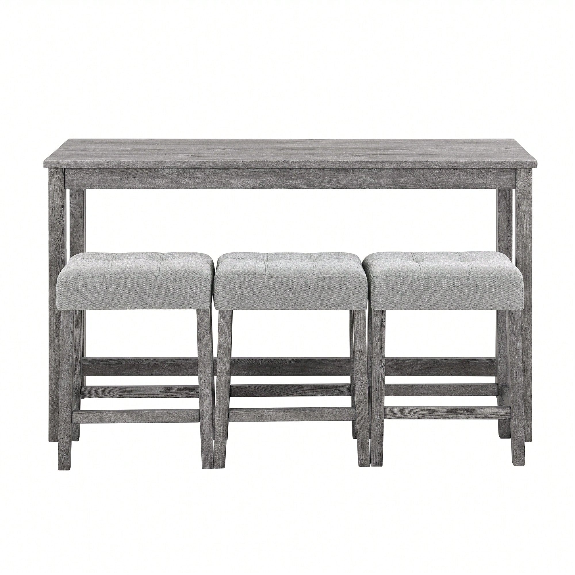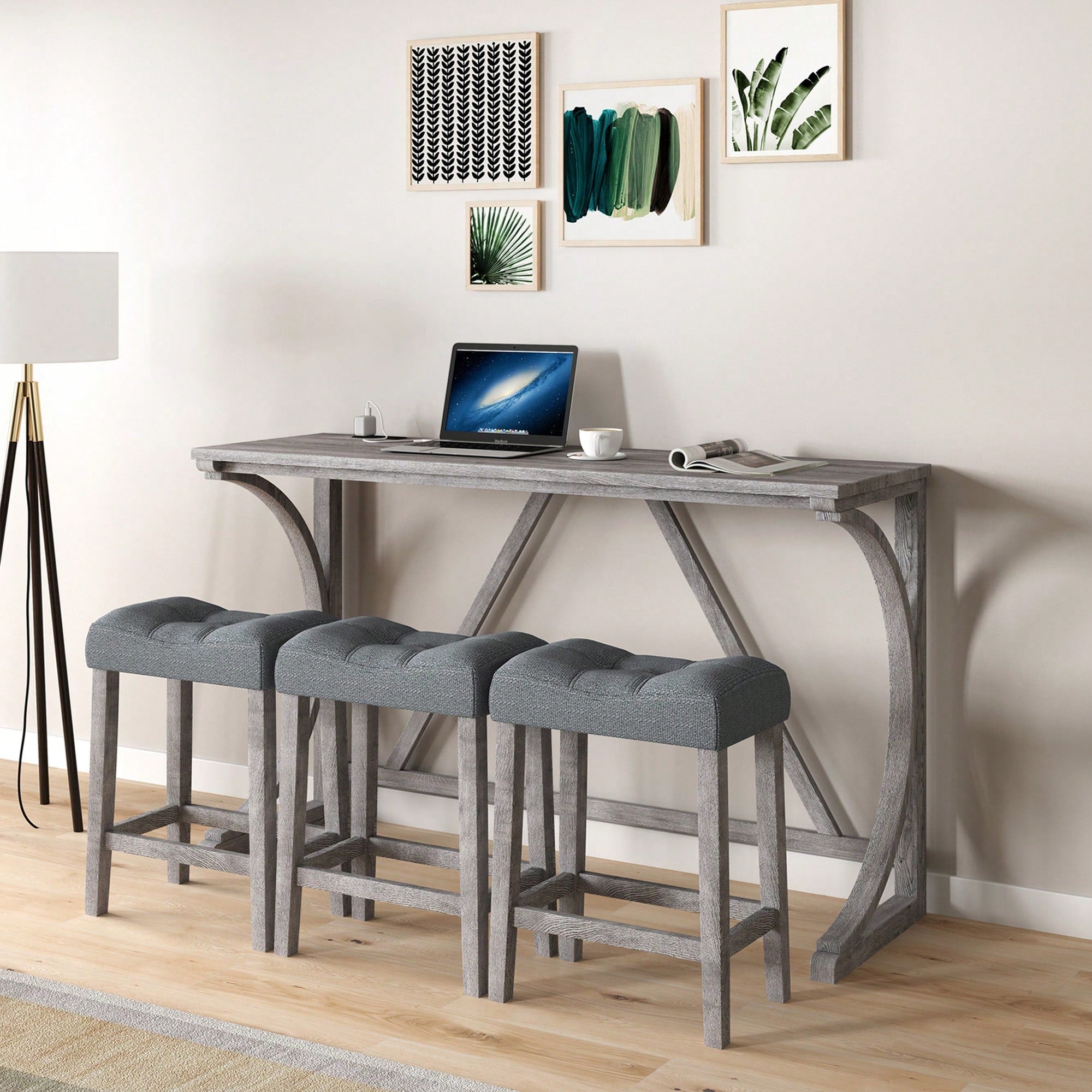 4-Piece Dark Gray Bar Table Set With Power Outlet And 3 Padded Stools For Dining Room Living Room Game Room