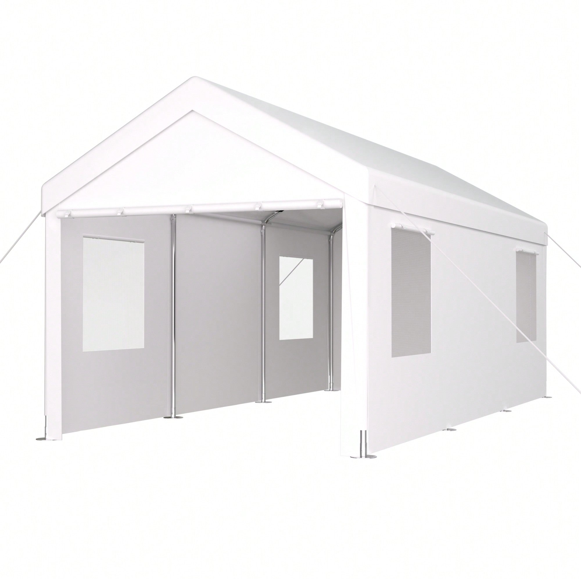 Heavy Duty Portable Carport Canopy 10x20 With Roll-Up Doors And Ventilated Windows For Cars Trucks Boats And Garden Tools Grey