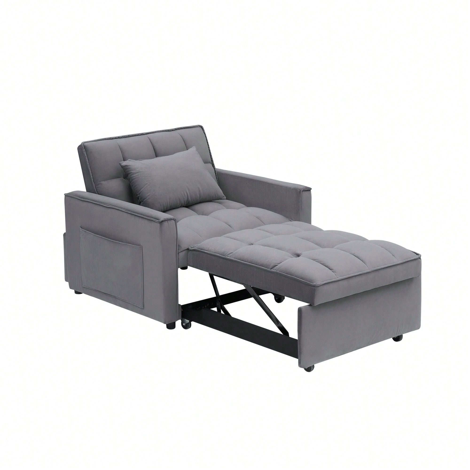 Modern Velvet Single Seater Convertible Sofa Bed With Removable Back Pillow For Office And Living Room