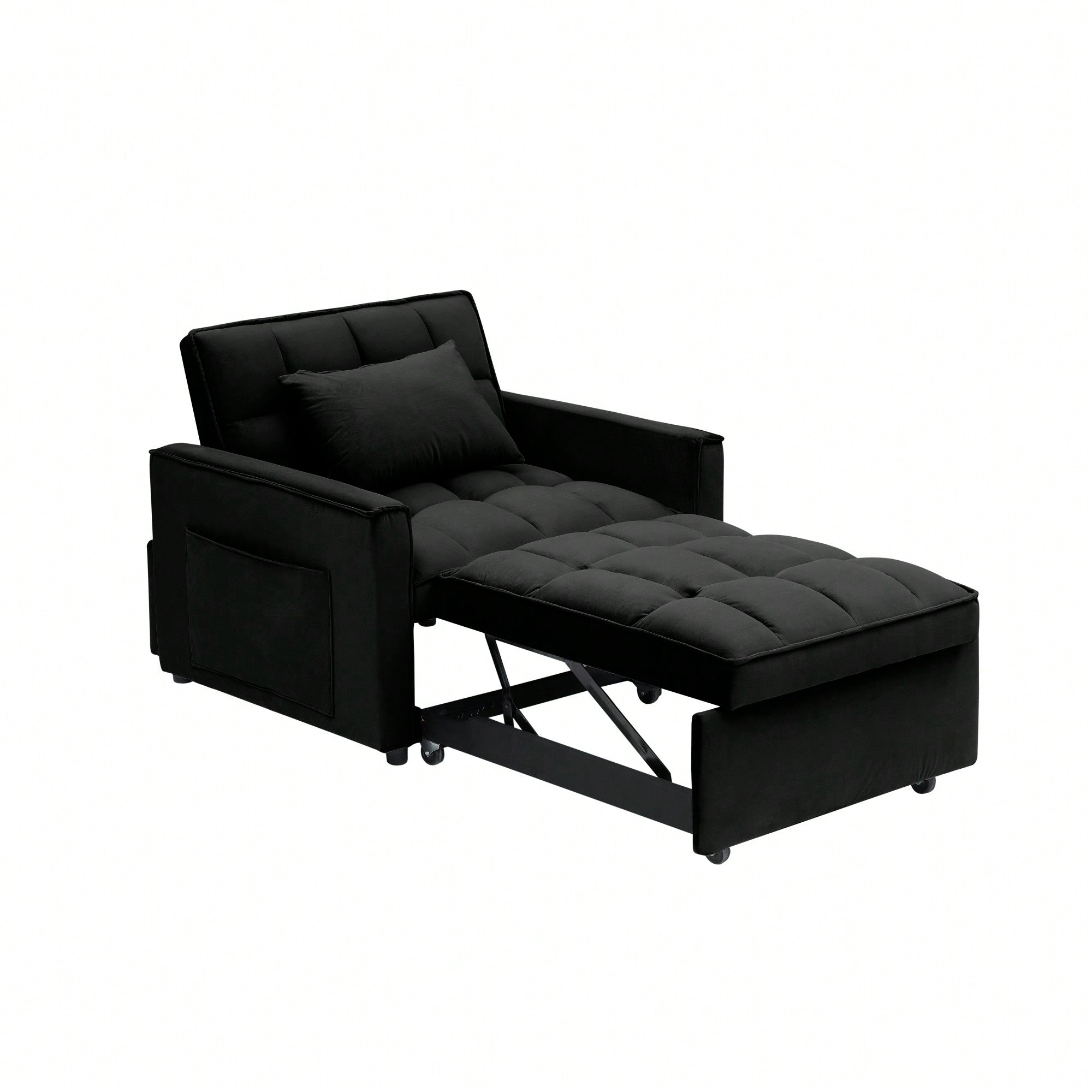 3 In 1 Convertible Sofa Bed Chair Recliner For Small Spaces Adjustable Back Black