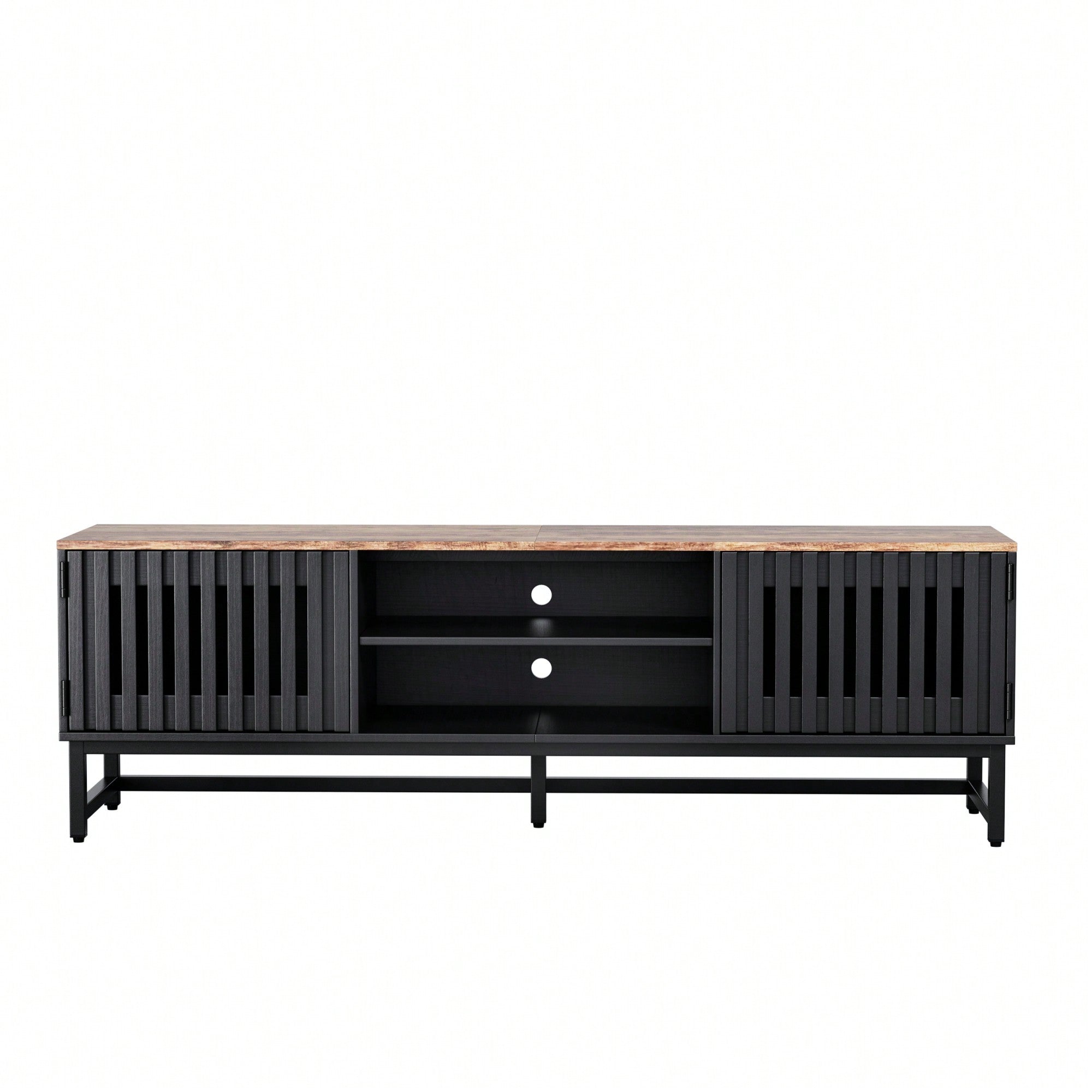 63 Inch Mid Century Modern TV Stand With Slatted Doors Stylish Media Console For Living Room And Bedroom Storage Entertainment Center