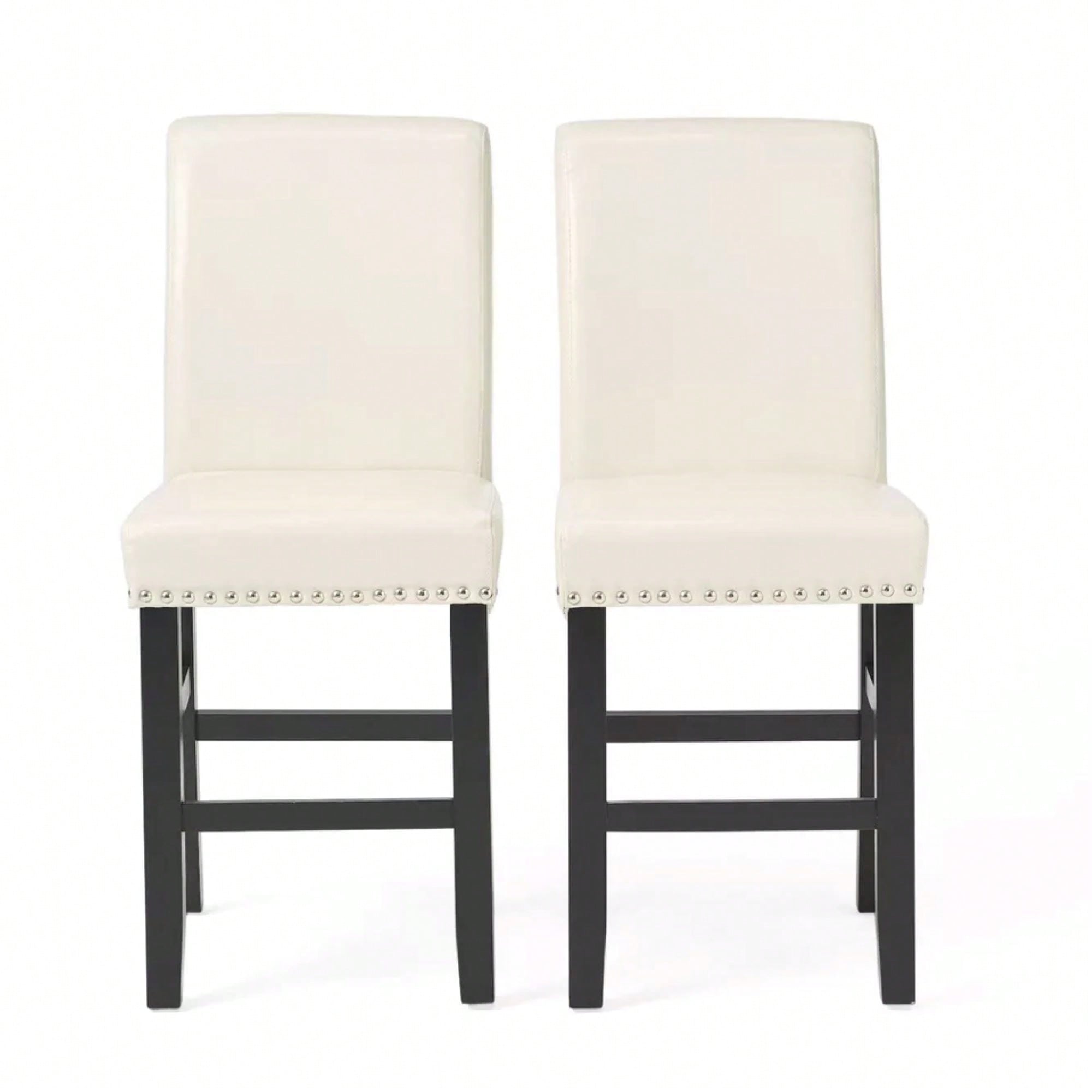 Contemporary Ivory Upholstered Dining Chairs With Nail-Head Trim Set Of 2 25 Inch Counter Stools For Kitchen Bedroom Dining Room