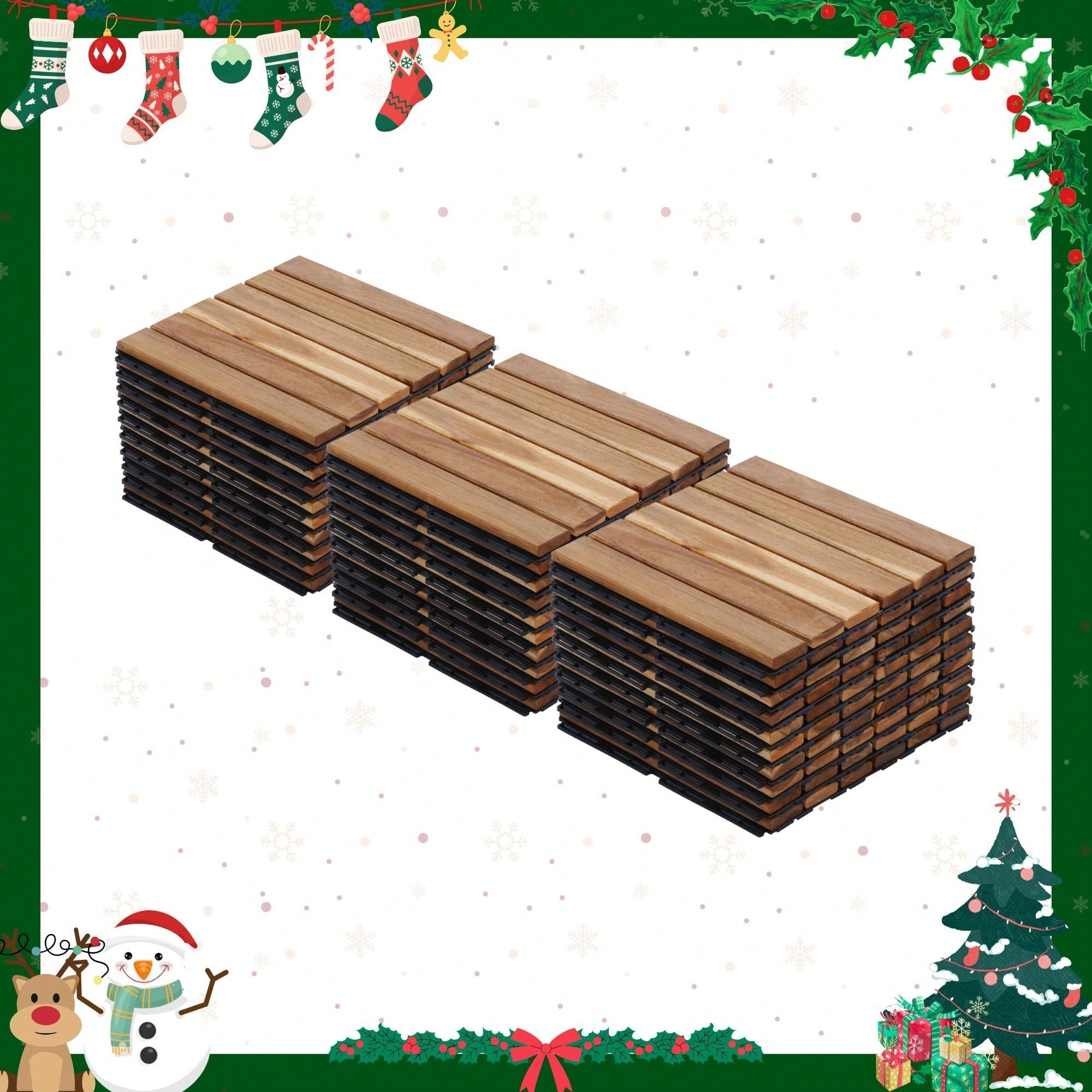 30 Interlocking Striped Acacia Hardwood Deck Tiles 12x12 Outdoor Flooring For Patio Balcony Poolside
