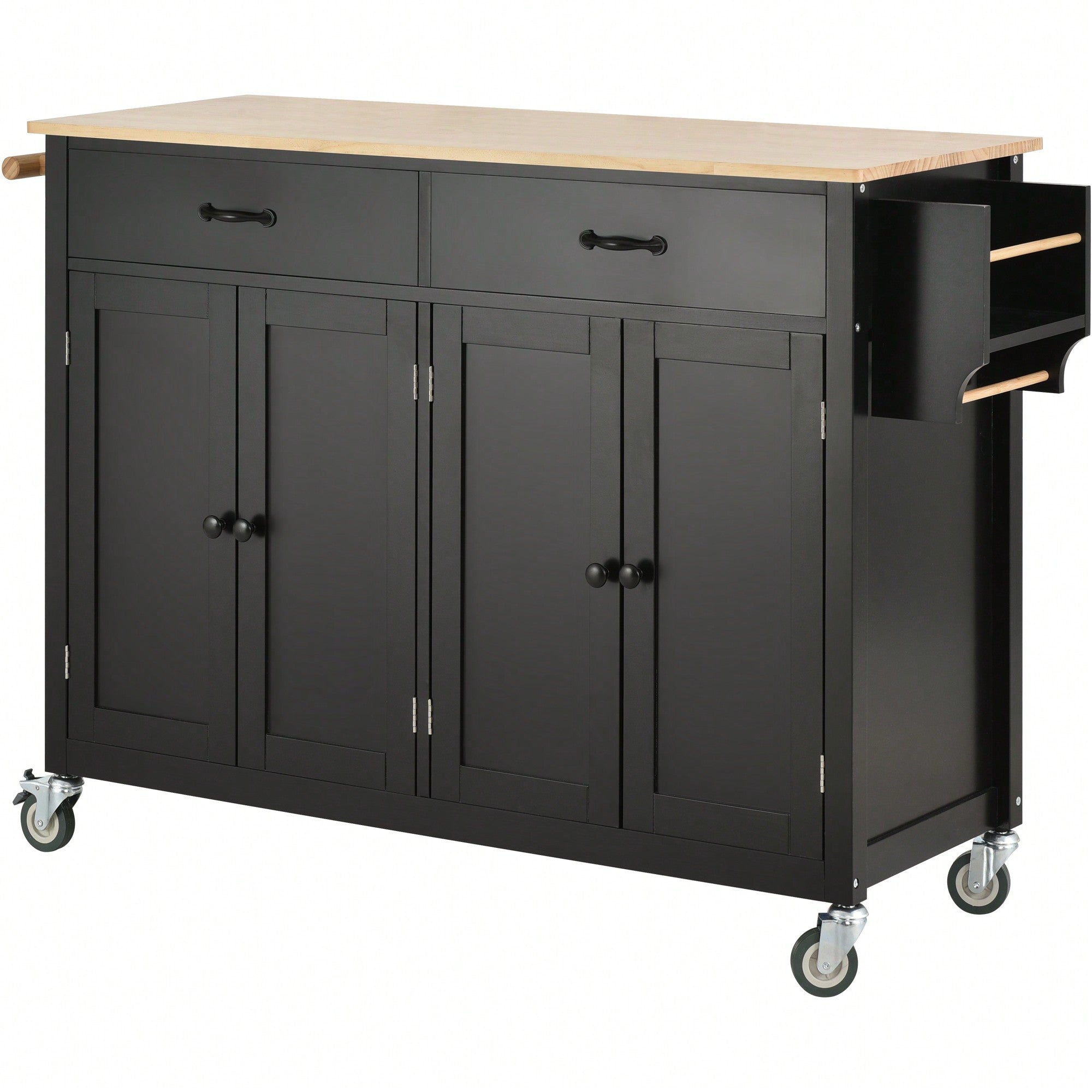 Versatile Kitchen Island Cart With Solid Wood Top, Locking Wheels, Ample Storage, And Convenient Accessories In Black Finish