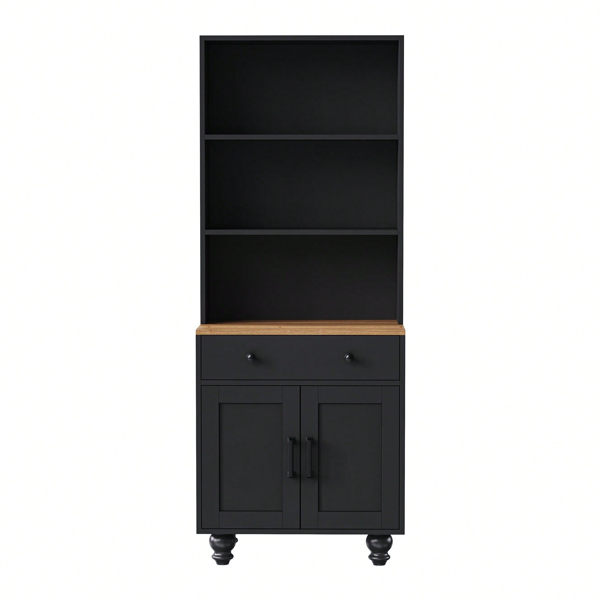 Modern Farmhouse Storage Cabinet with Adjustable Shelves and Drawer for Kitchen Living Room White Finish 5 Tier Bookshelf Solid Wood Legs