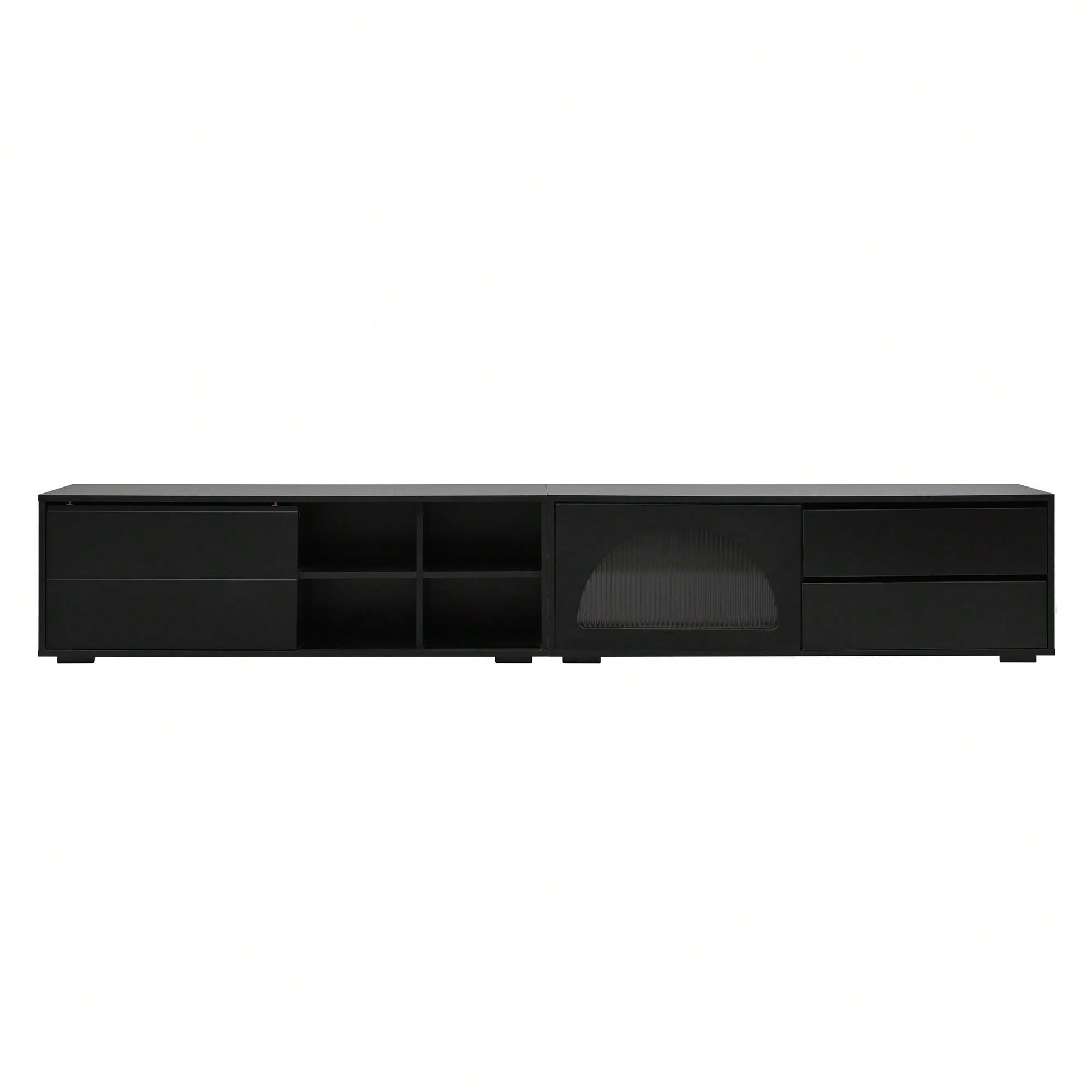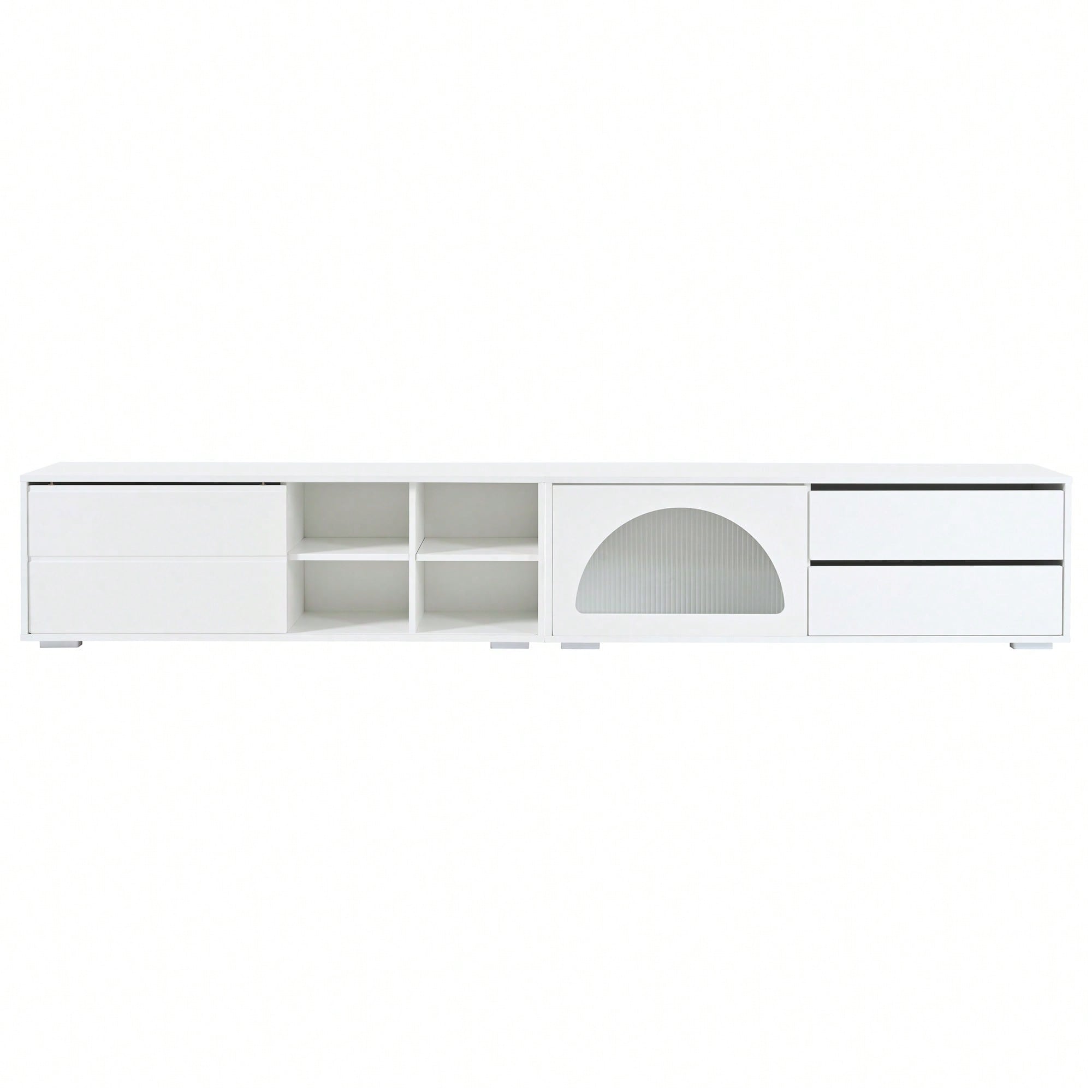 Modern Fluted Glass Door TV Stand for TVs Up to 100 Inches with Sliding Door and Drawers, LED Lights, White Finish for bedroom