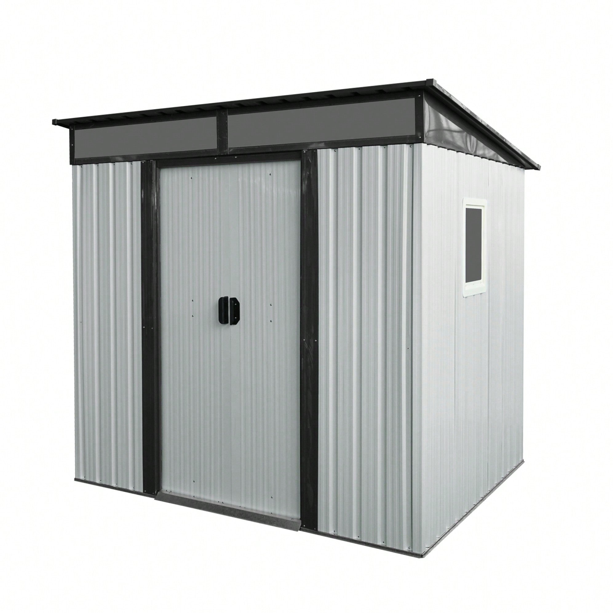 6ft X 5ft Outdoor Metal Storage Shed With Lockable Sliding Doors And Clear Panel For Garden And Lawn Use In Black And White