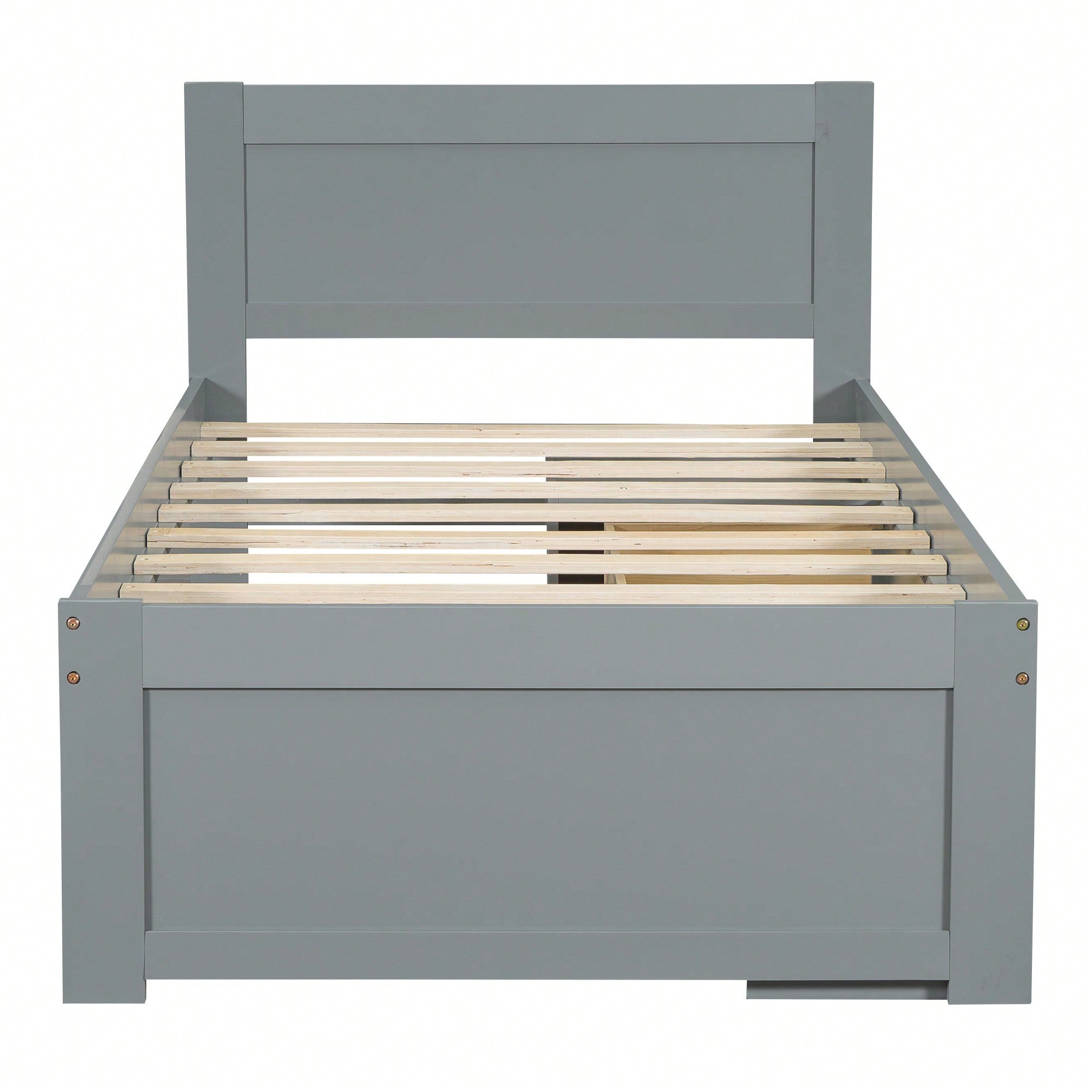 Twin Size Platform Bed With Storage Drawer And Two Shelves Gray