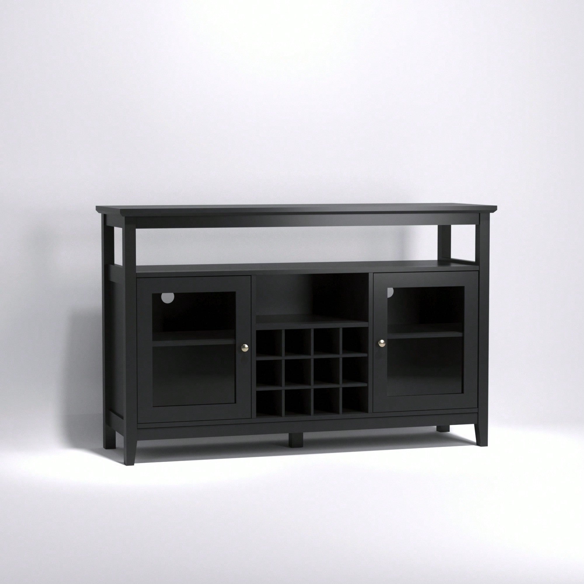 Elegant Black Storage Buffet Cabinet With Glass Doors For Dining Room Or Living Room