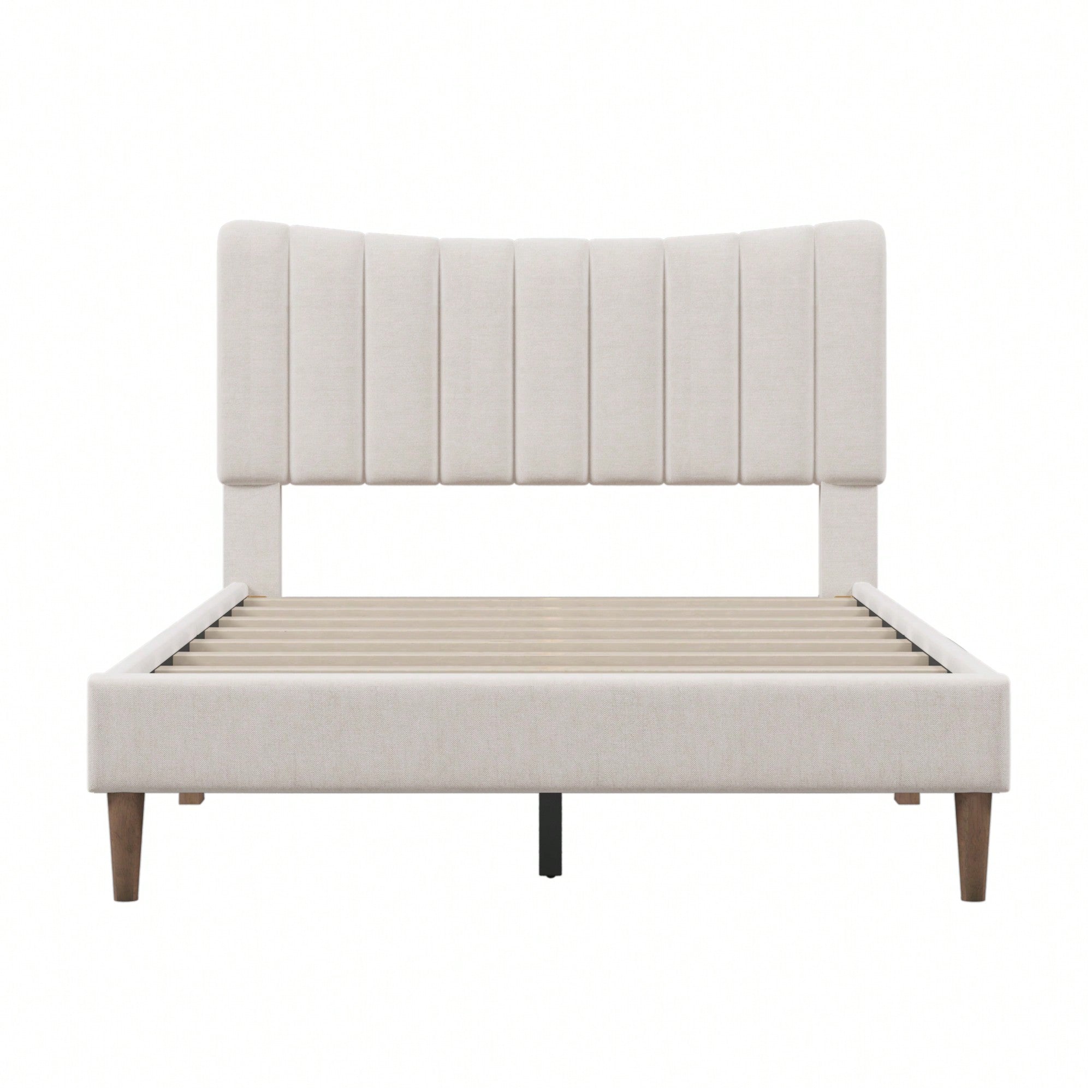Upholstered Platform Bed Frame with Vertical Channel Tufted Headboard, No Box Spring Needed, Full Size, Cream Color