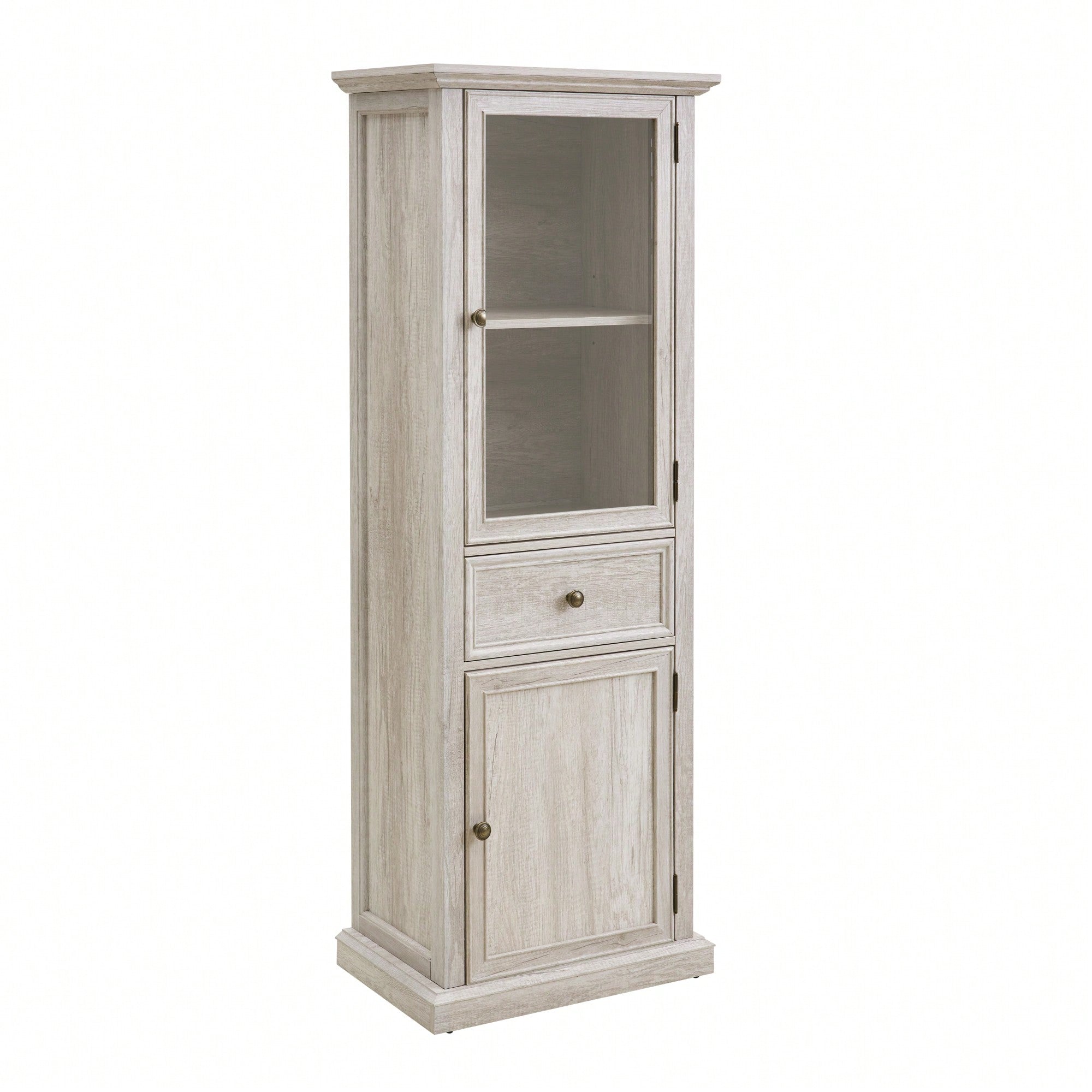 Elegant Freestanding Tall Storage Cabinet With Glass Door And Adjustable Shelves For Living Room Kitchen Dining Room Office White Finish