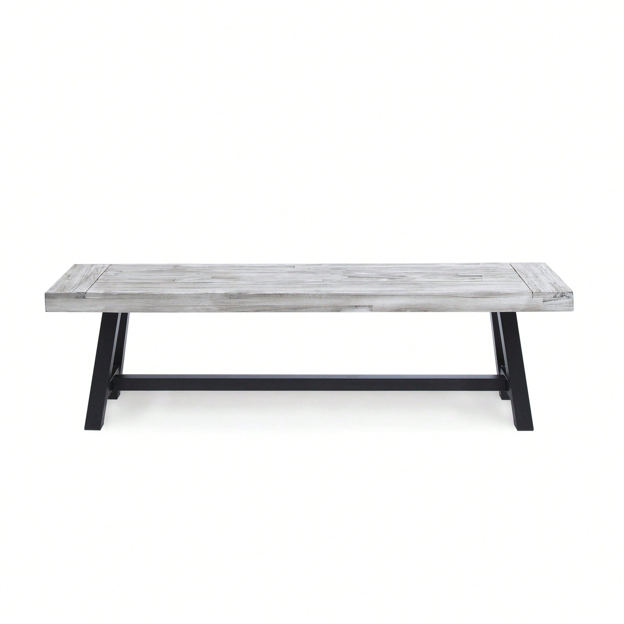 Sandblast Acacia Wood Dining Bench With Black Rustic Metal Frame Light Grey