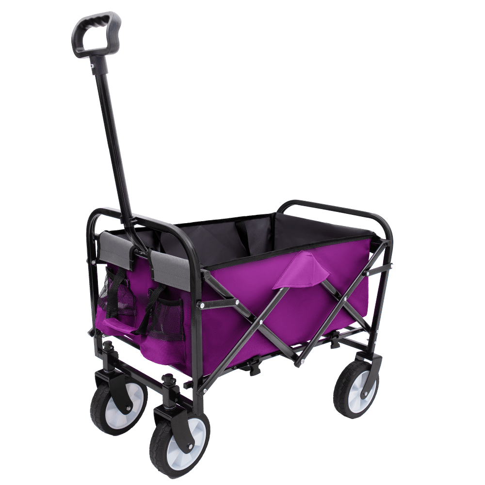 Collapsible Utility Wagon Cart with Strapping System, Supports 225lbs All-Terrain Wheels Purple