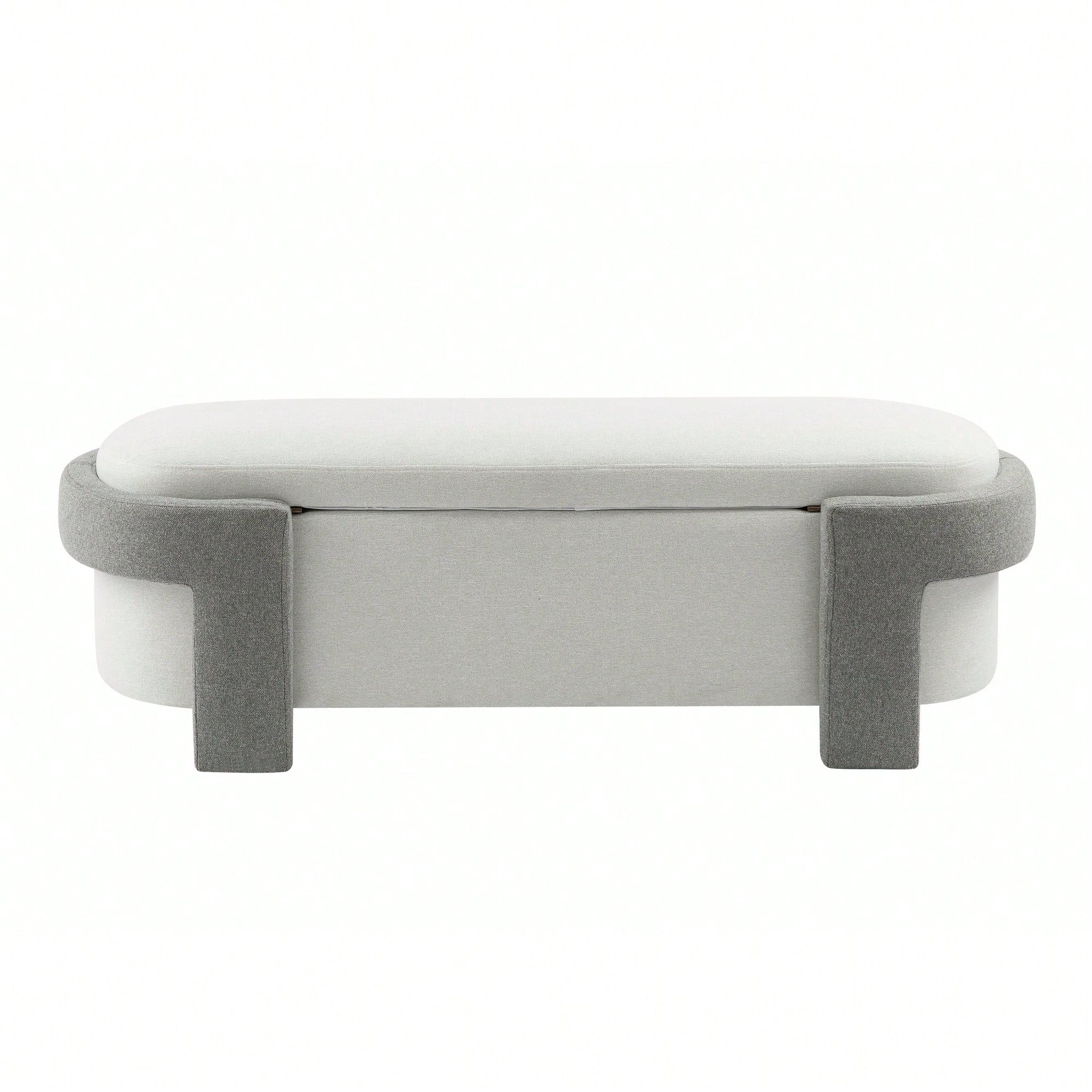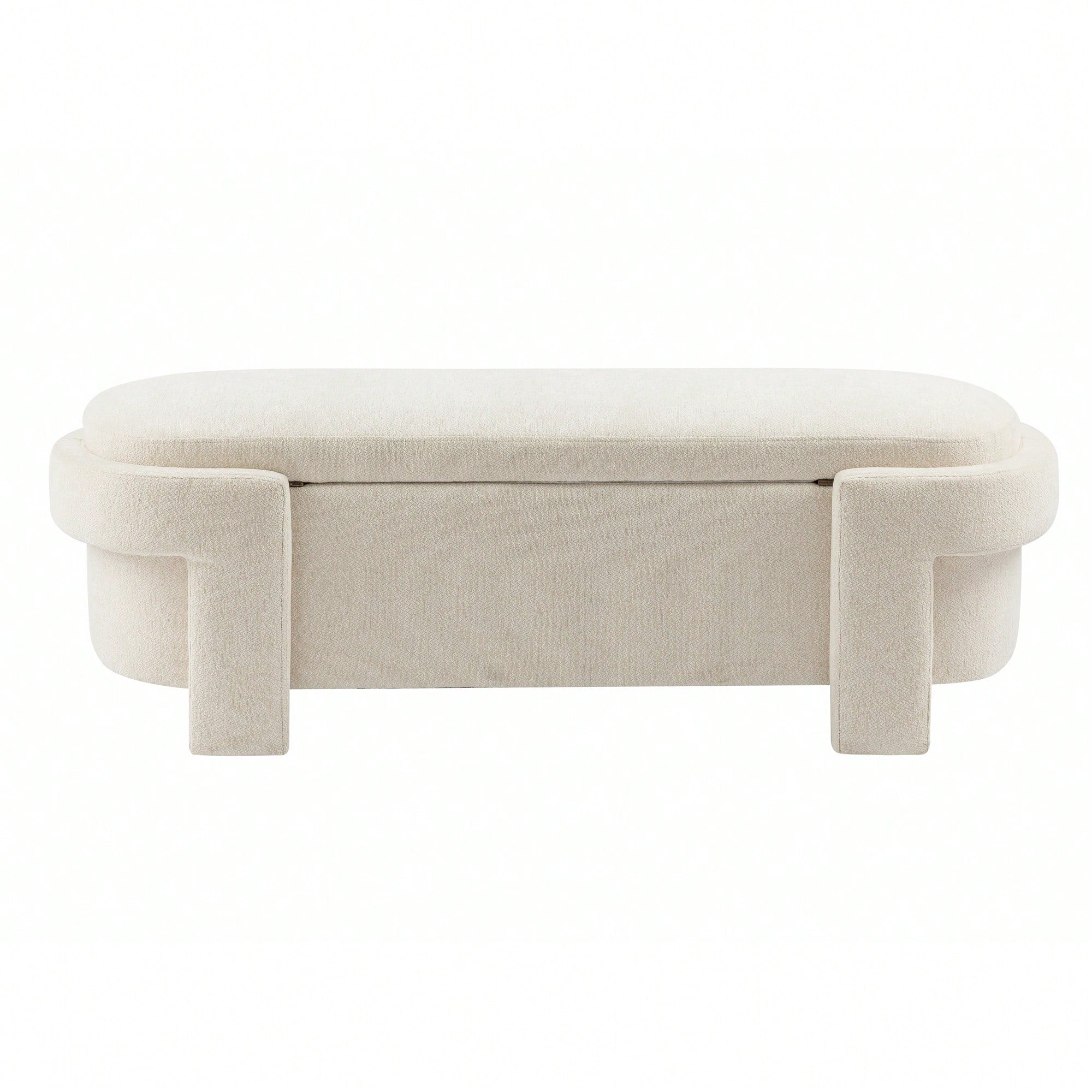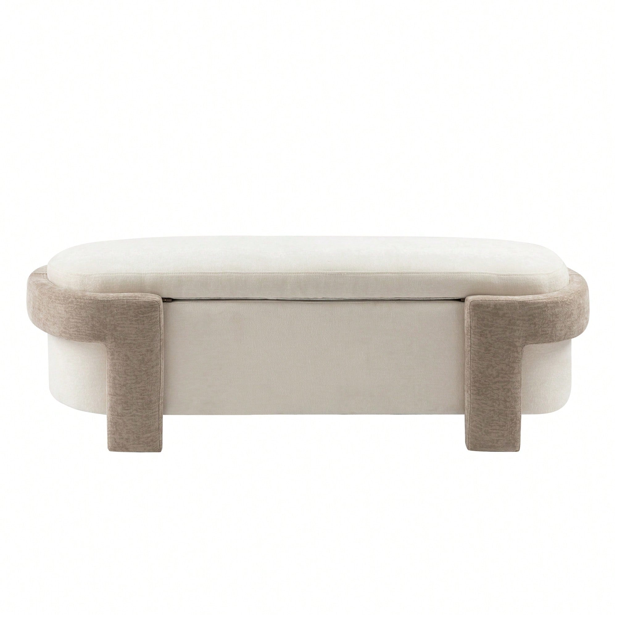 Versatile Beige Storage Ottoman Bench For Living Room And Bedroom - Spacious Durable Design