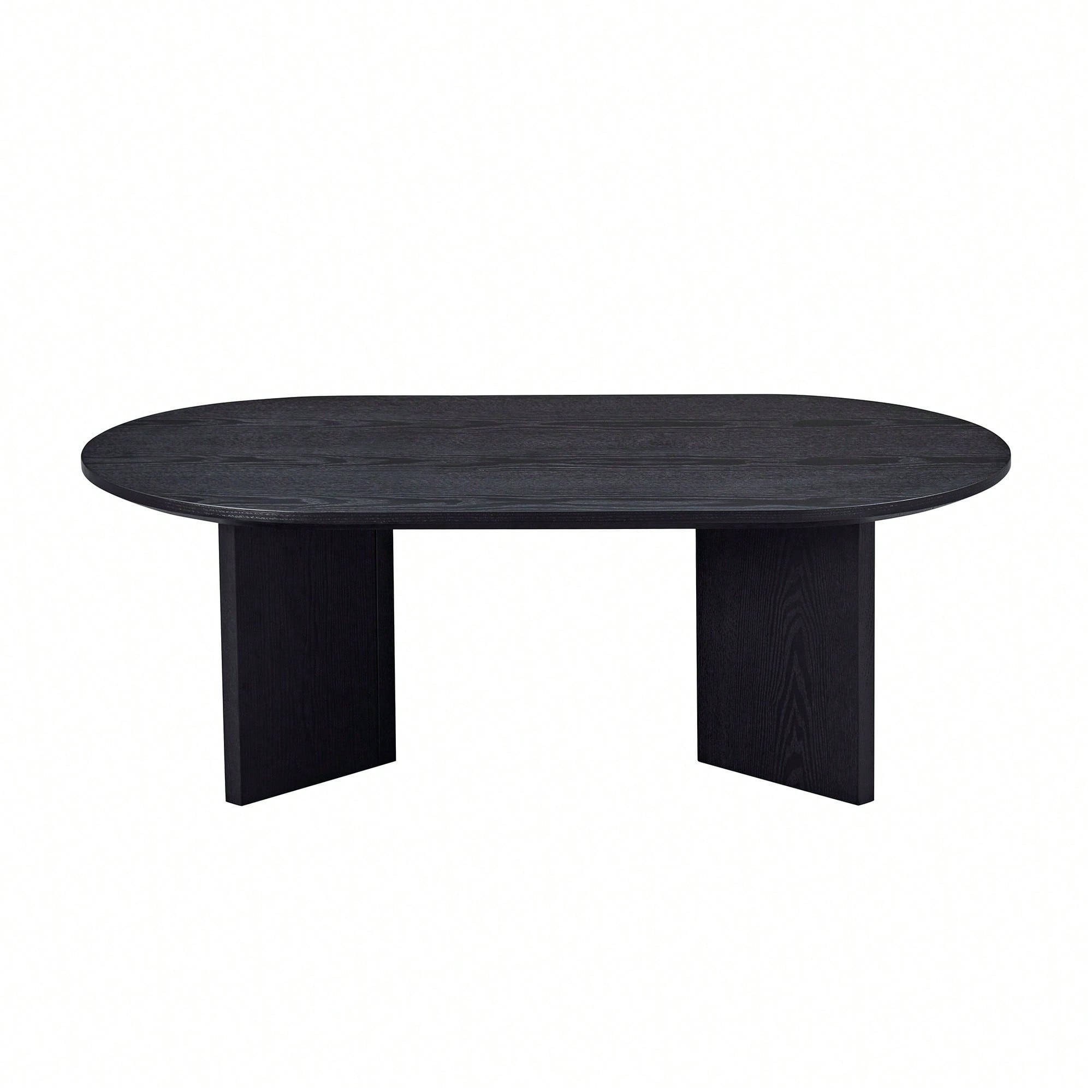39.37 Inch Oval Coffee Table For Living Room Small Modern MDF Design With Sturdy Pedestal Black Finish Ideal For Apartment And Bedroom
