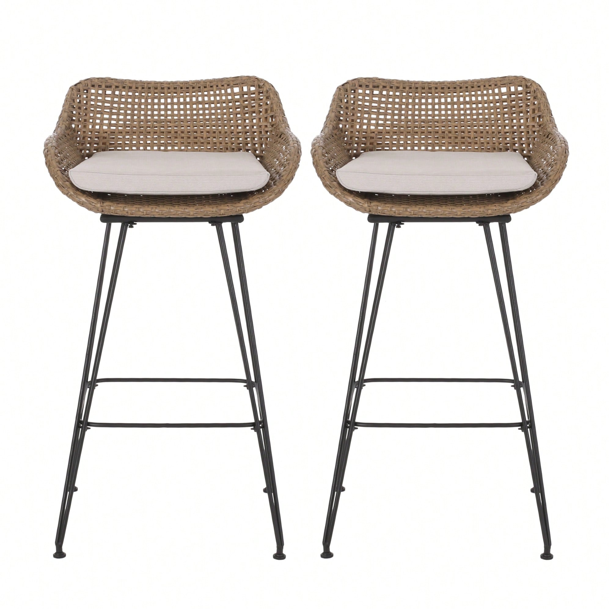Regular price $309.99 USDSale price $309.99 USD Regular priceUnit price per$458.99 USDSale Sold out1. Features:- Outdoor wicker and iron low back barstools - Set of 2 with light brown finish and beige cushions - Durable polyethylene rattan woven finish...