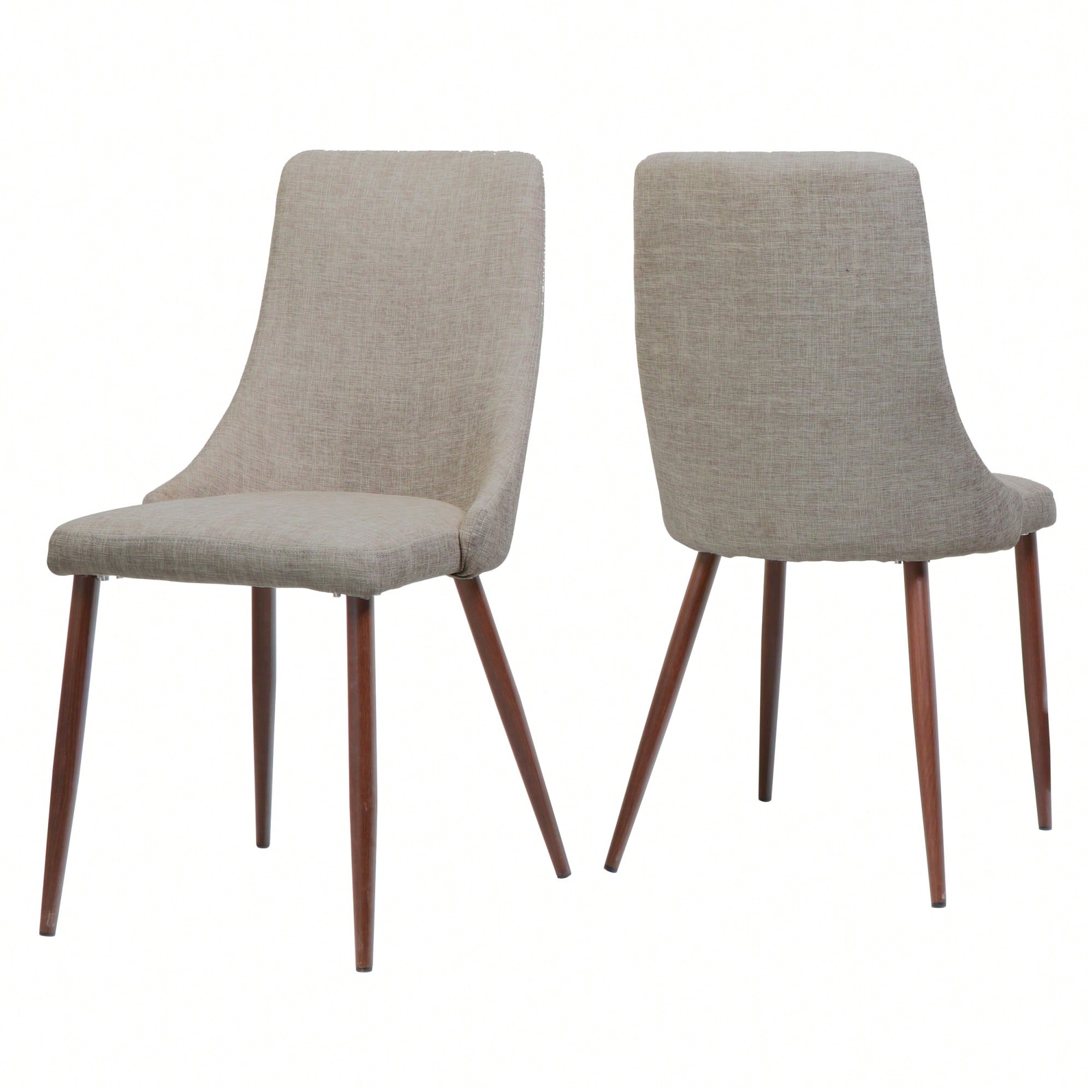 Wheat And Dark Walnut Mid Century Modern Armless Dining Chairs Set Of 2