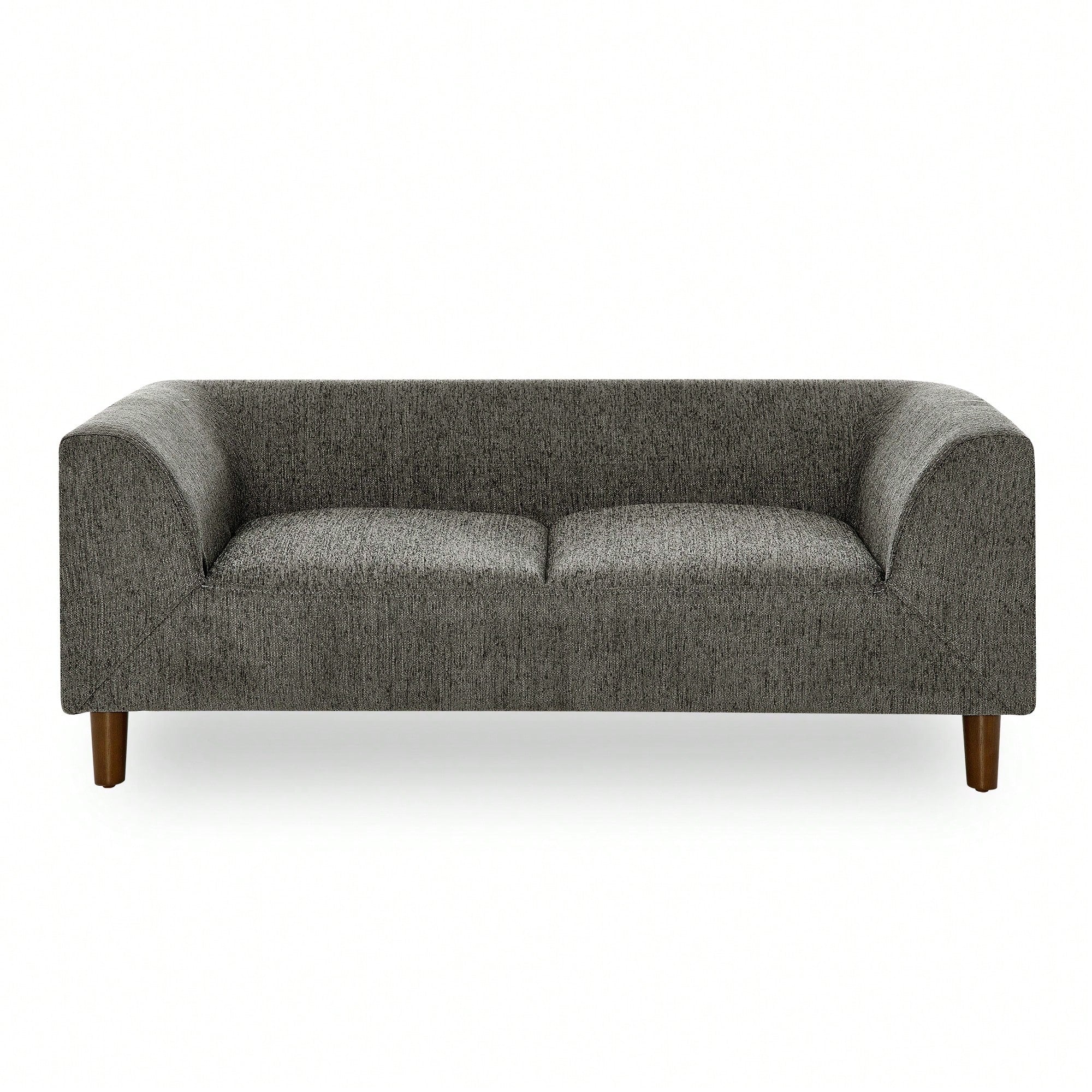 Contemporary Beige Living Room Bench with Soft Cushion, Unique Armrests, and Rubber Wood Legs for Living Rooms, Bedrooms, and Entrances