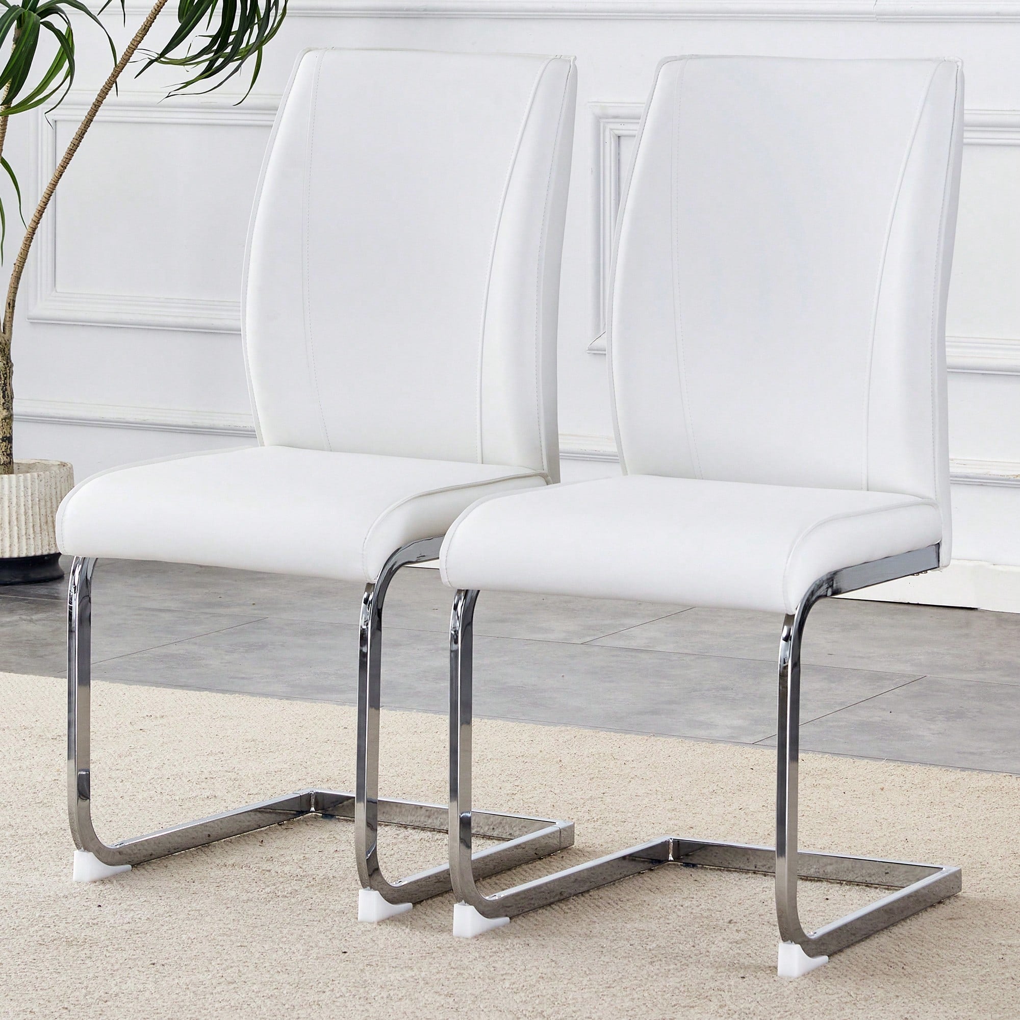 Elegant PU Faux Leather High Back Dining Chairs With C-Shaped Metal Legs For Kitchen, Dining Room, Office, Or Patio - Set Of 2 In Black