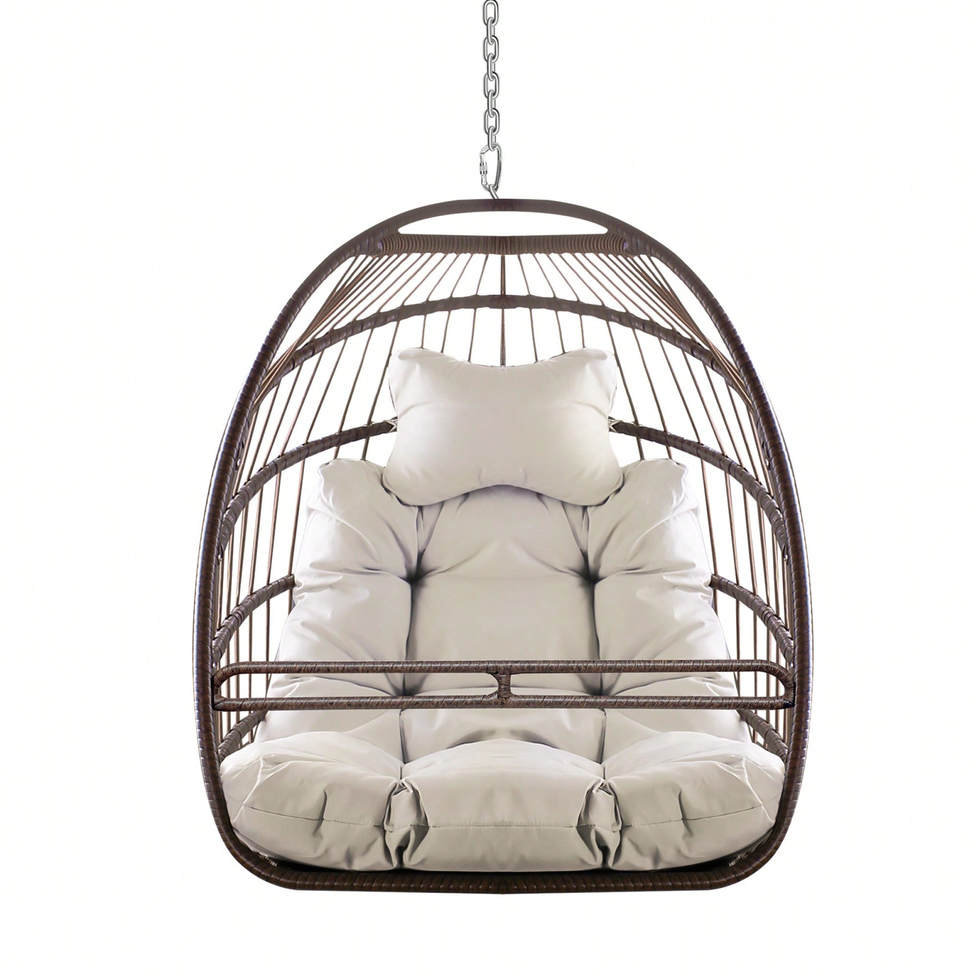 UV Resistant Hanging Egg Chair With Cushions For Indoor Outdoor Use, Foldable Frame, 350lbs Capacity For Patio Porch Balcony