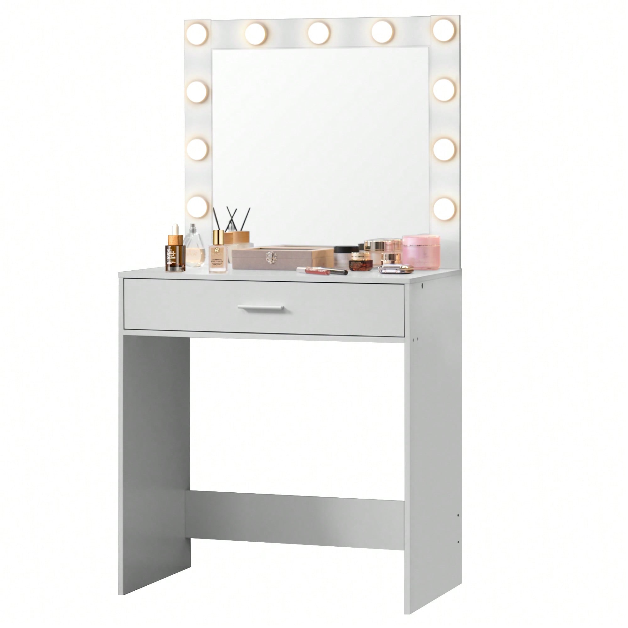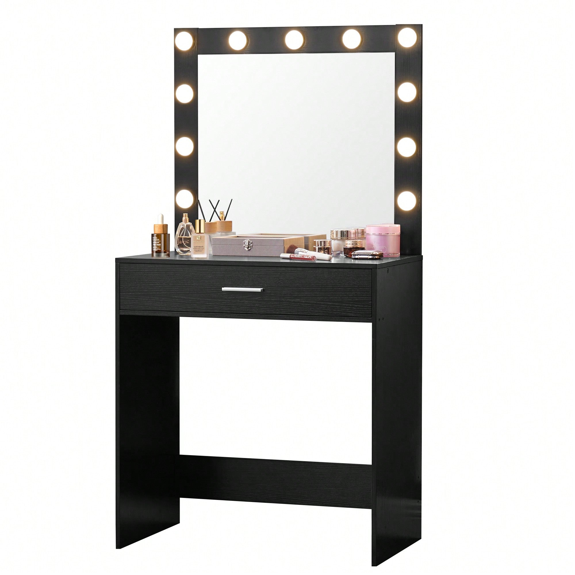 Elegant Vanity Desk With Adjustable Brightness Mirror And Lights, Spacious Dressing Table With Large Drawer And Multi-Level Storage