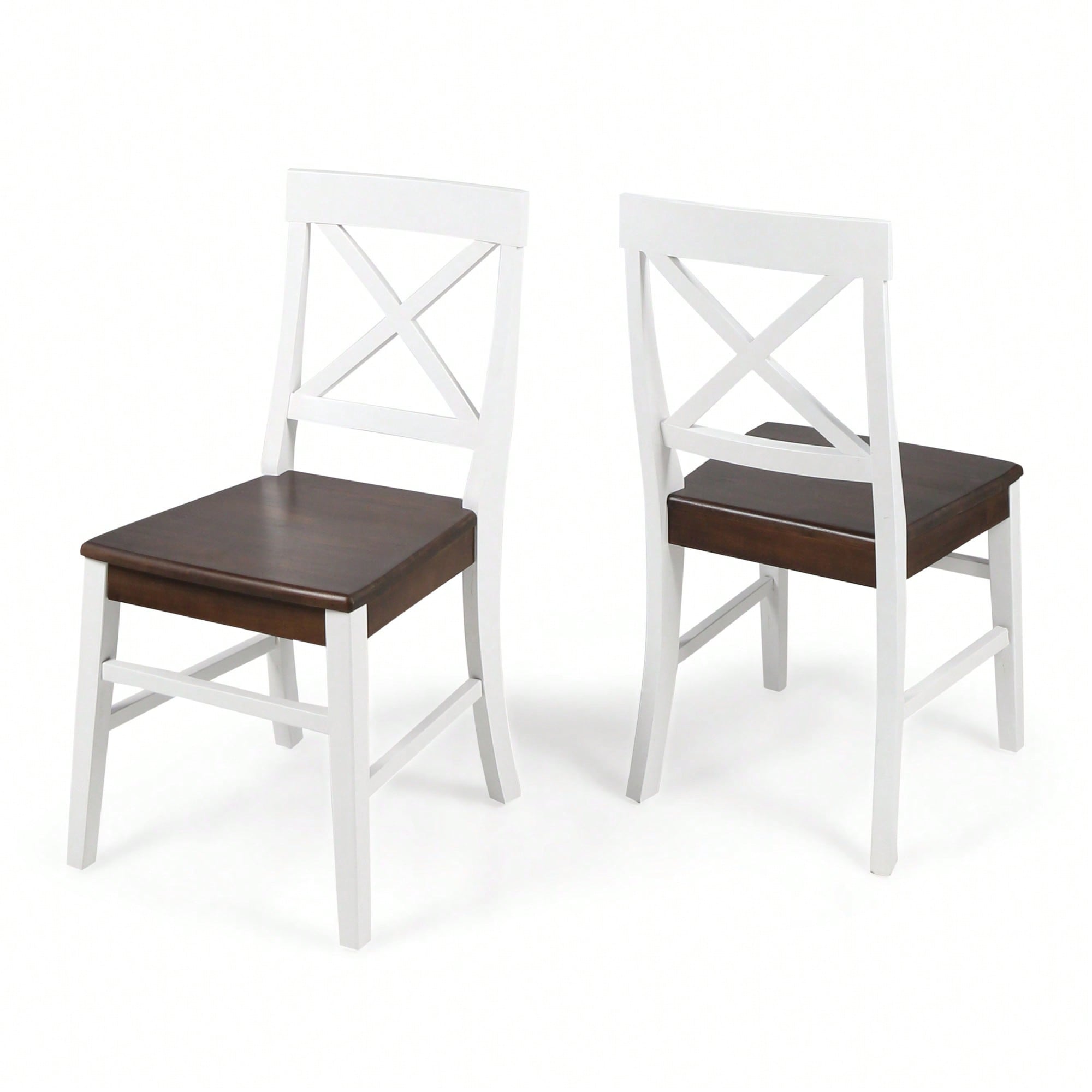 Set Of 2 White Acacia Wood Dining Chairs For Elegant Home Decor