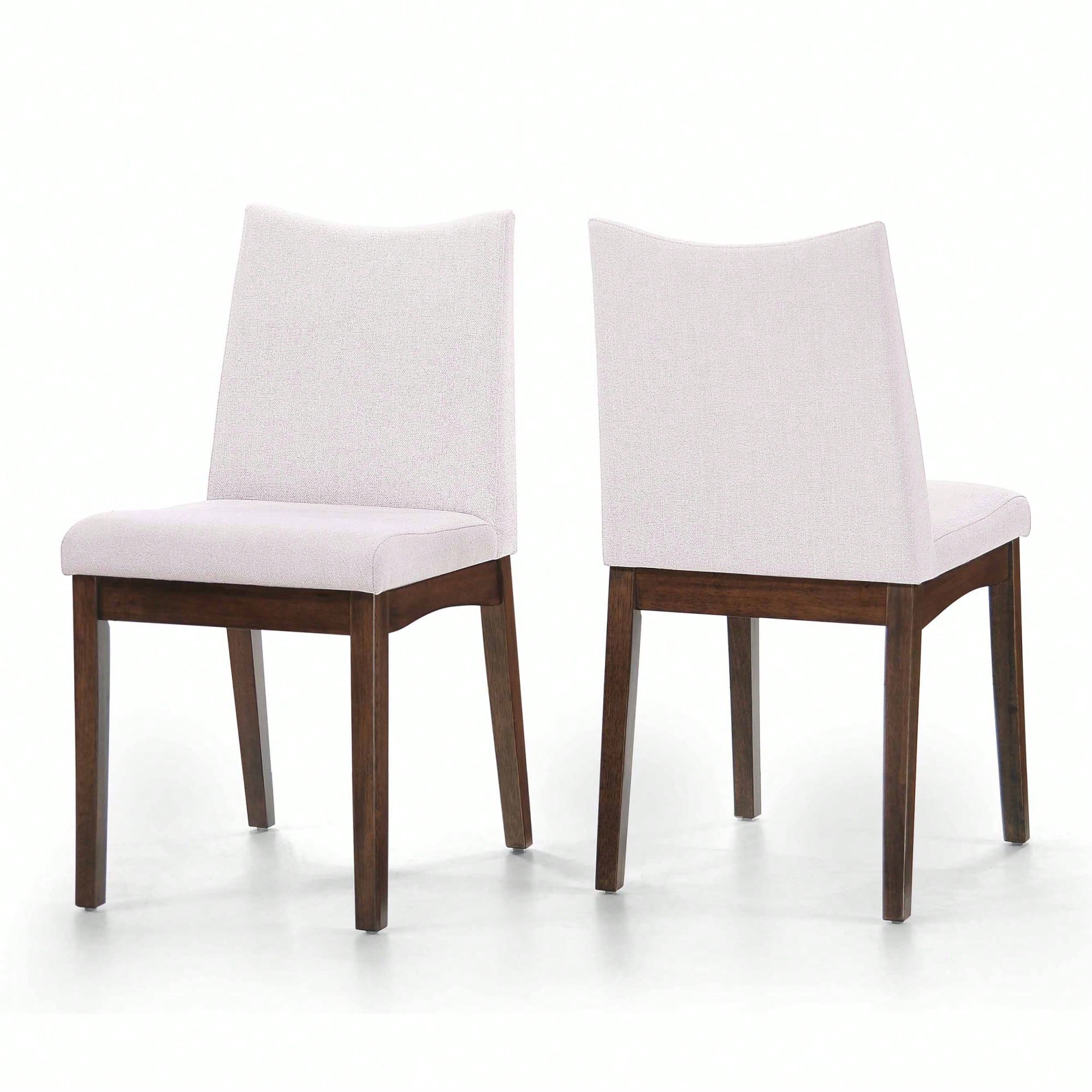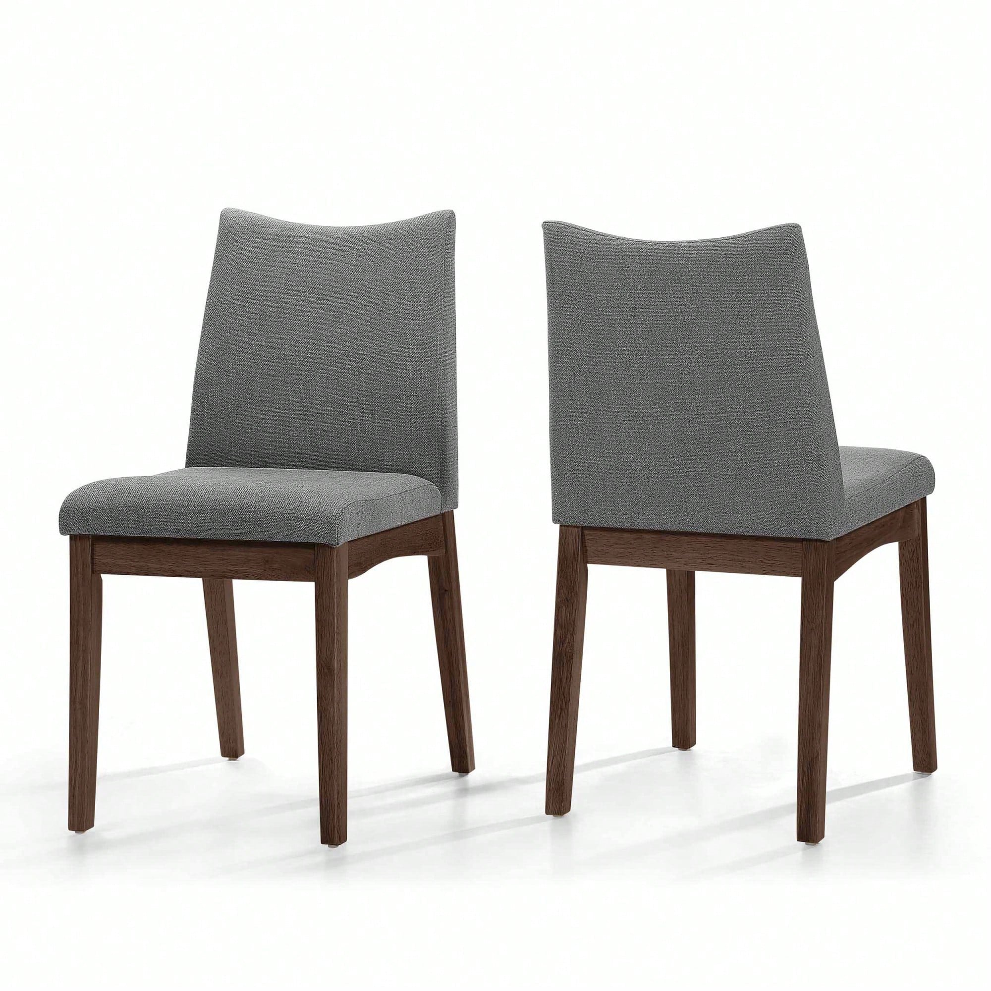 Upholstered Dining Chairs Set Of 2 With Dark Walnut Finish Mid-Century Modern Design