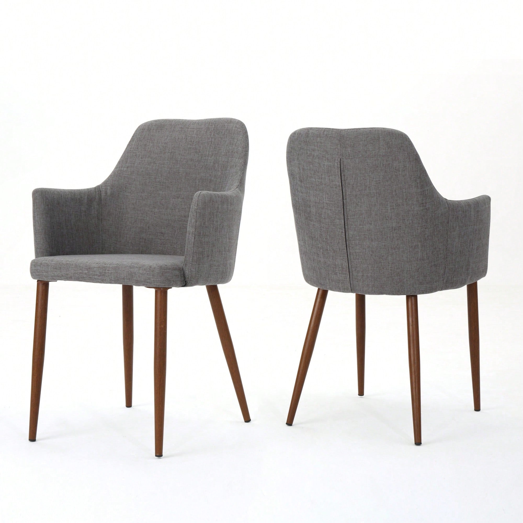 Fabric Upholstered Mid-Century Dining Chairs With Dark Walnut Finished Metal Legs - Set Of 2