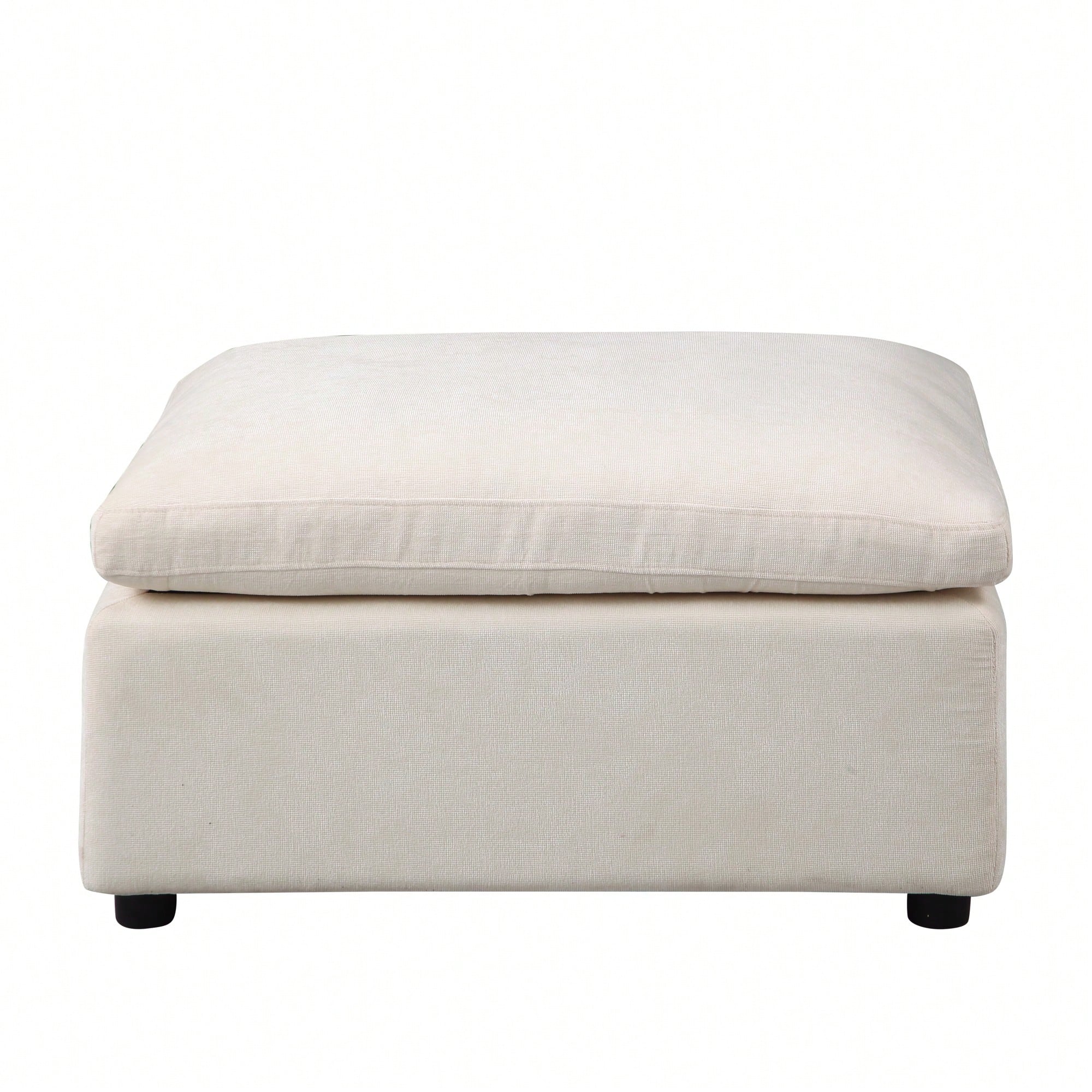 Contemporary Beige Chenille Square Modular Ottoman For Sectional Sofas