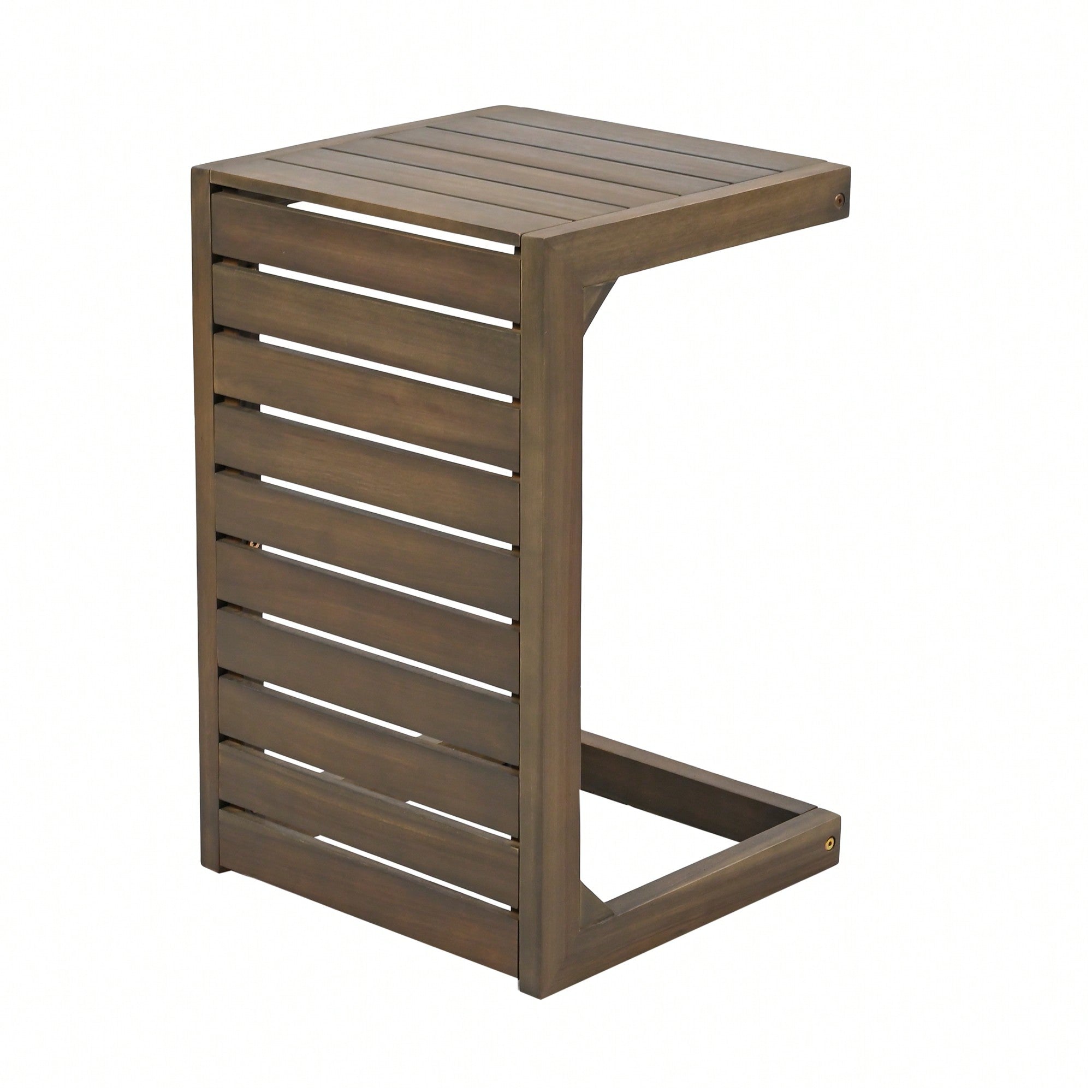 C-Shaped Grey End Table Modern Accent Furniture For Living Room And Bedroom