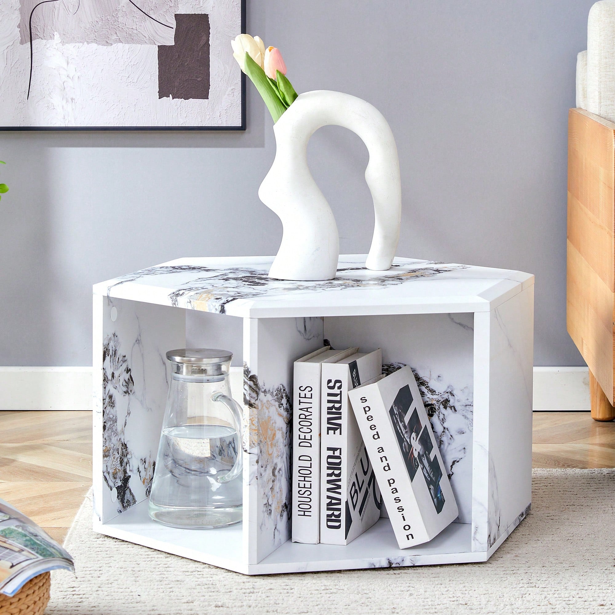 Hexagonal MDF Coffee Table With Unique Pattern Stickers And Multi-Hole Design For Enhanced Storage And Versatile Style