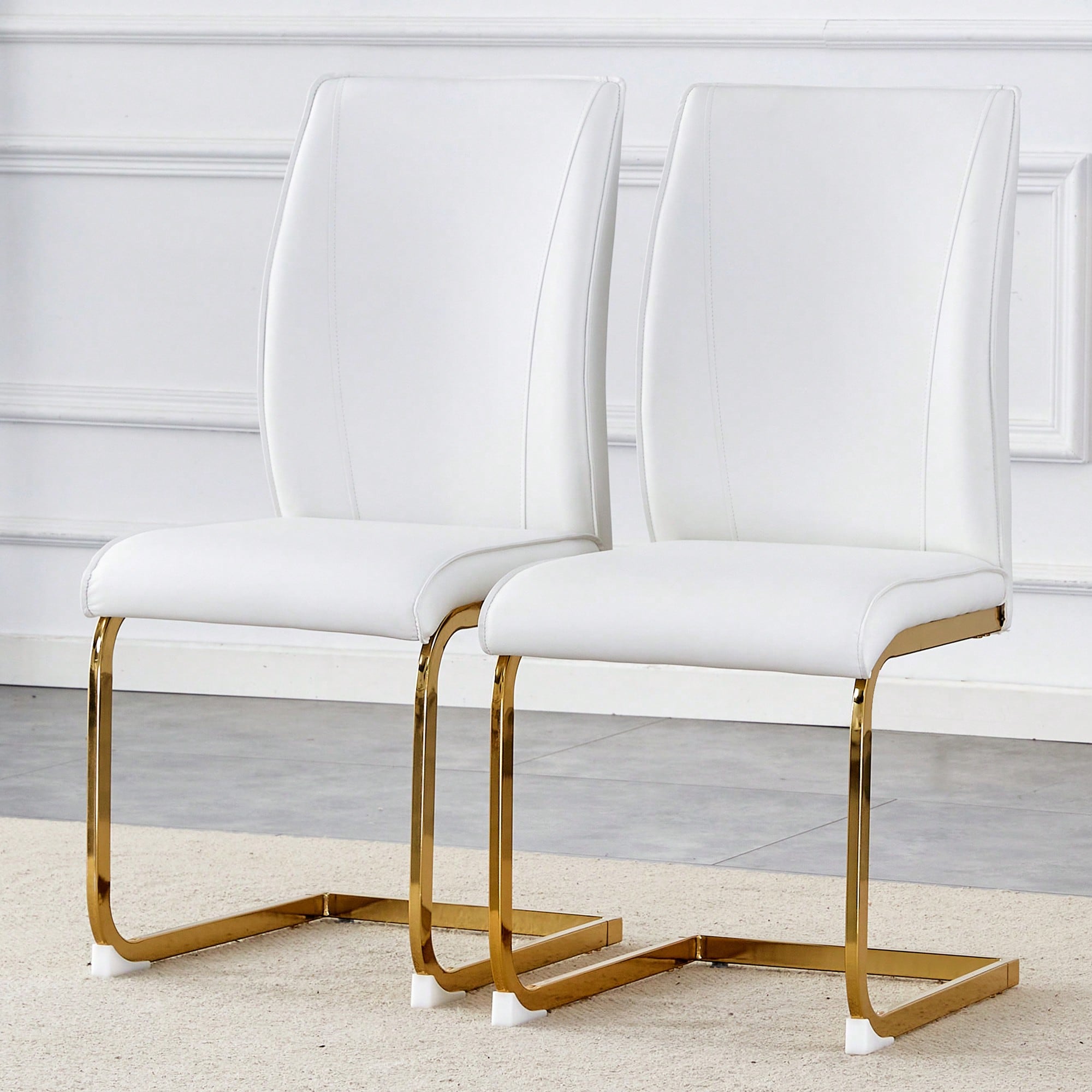 Elegant Black PU Dining Chairs Set Of 2 High Resilience With Arched Gold Metal Legs