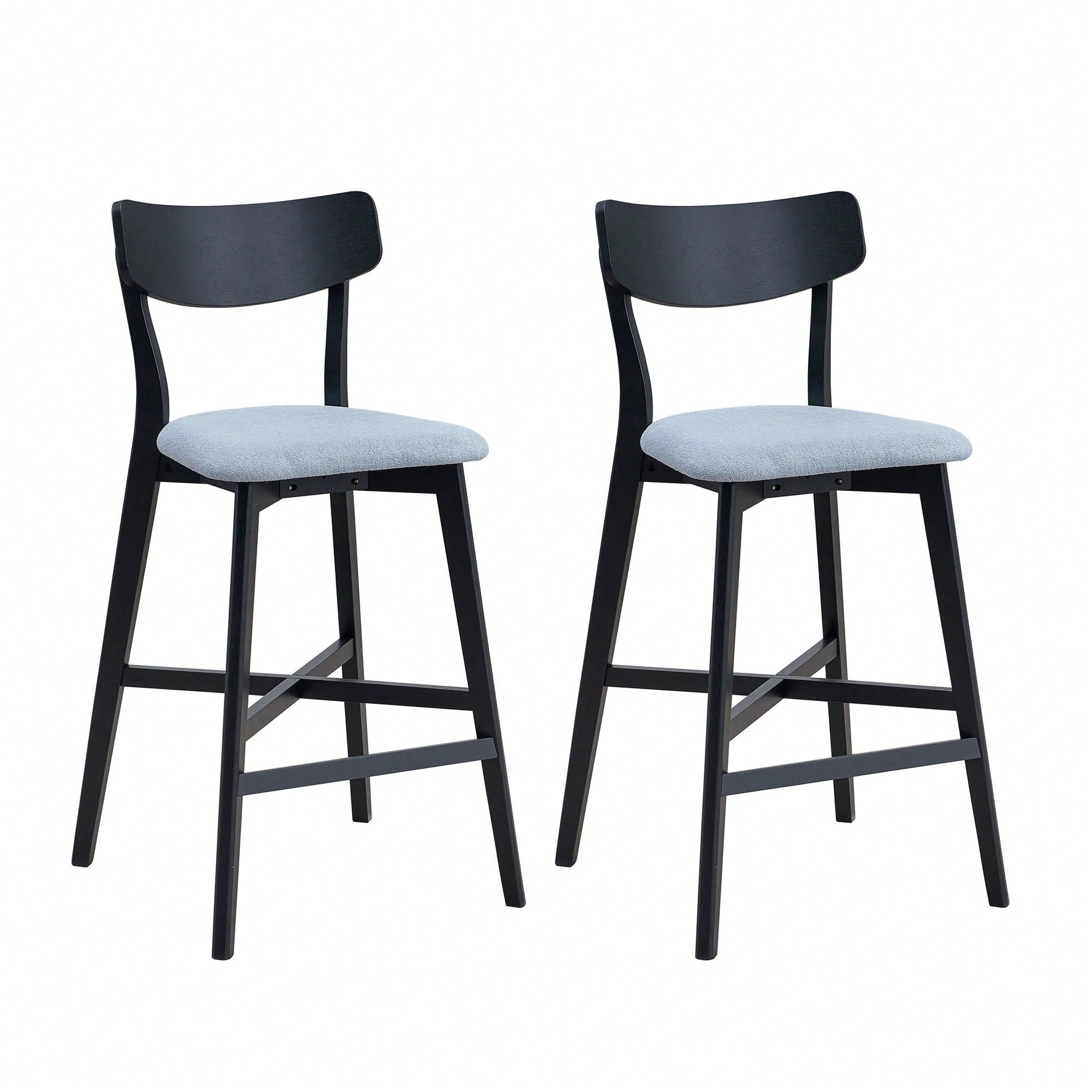 Modern Upholstered Kitchen Island Bar Chairs Set Of 2 With Backrest And Footrest For Pub Living Room And Restaurant Black Wooden Frame