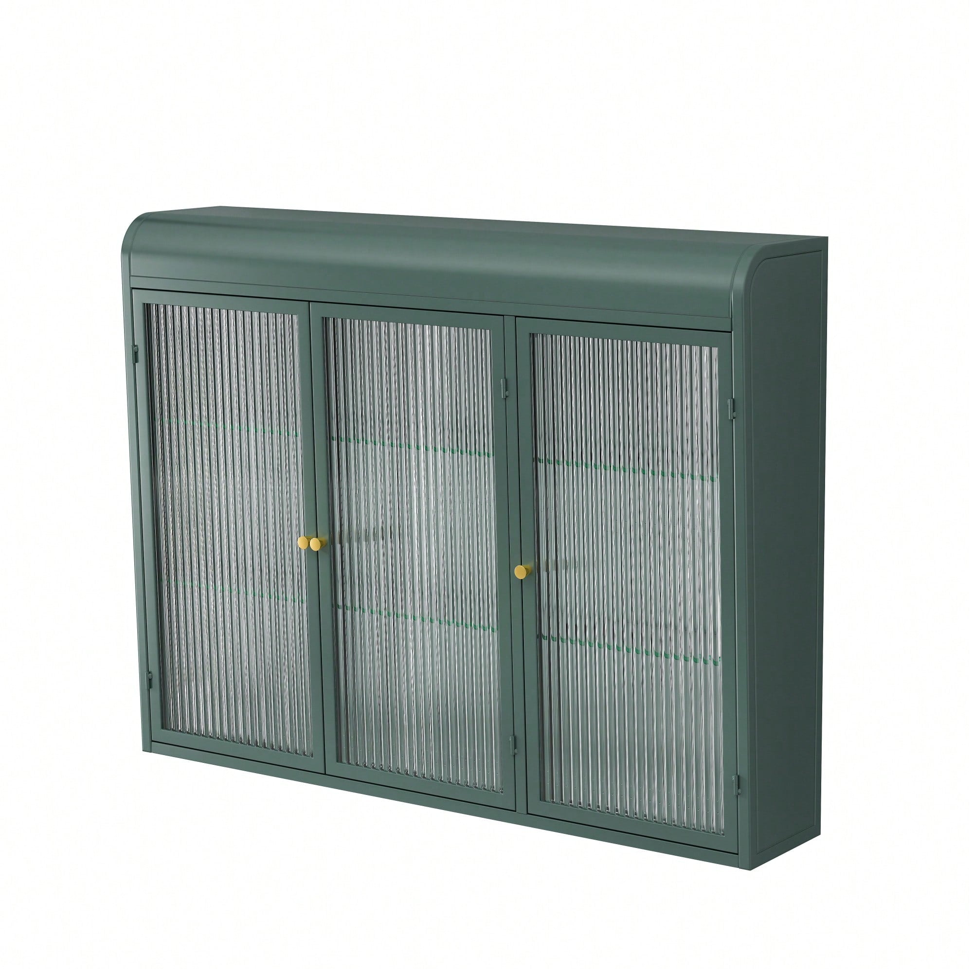Elegant 3 Door Arched Wall Mounted Glass Cabinets For Kitchen Living Room And Bathroom In White Finish