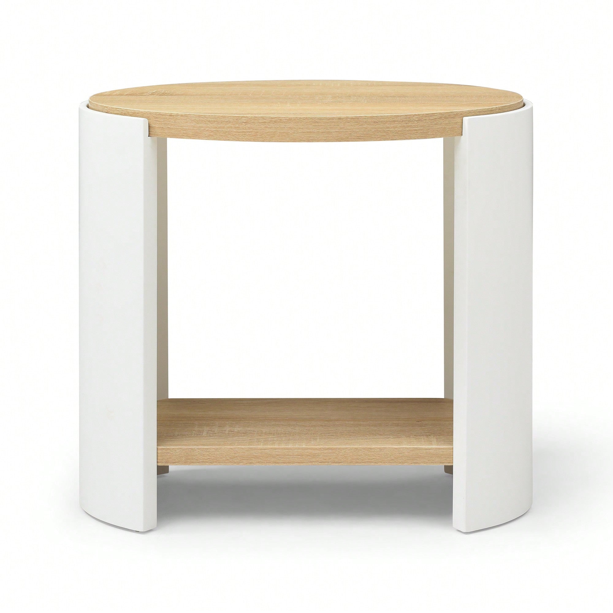 Compact Nightstand with Dual Shelves for Small Spaces Versatile Side Table for Bedroom Easy Assembly in Natural and White Finish