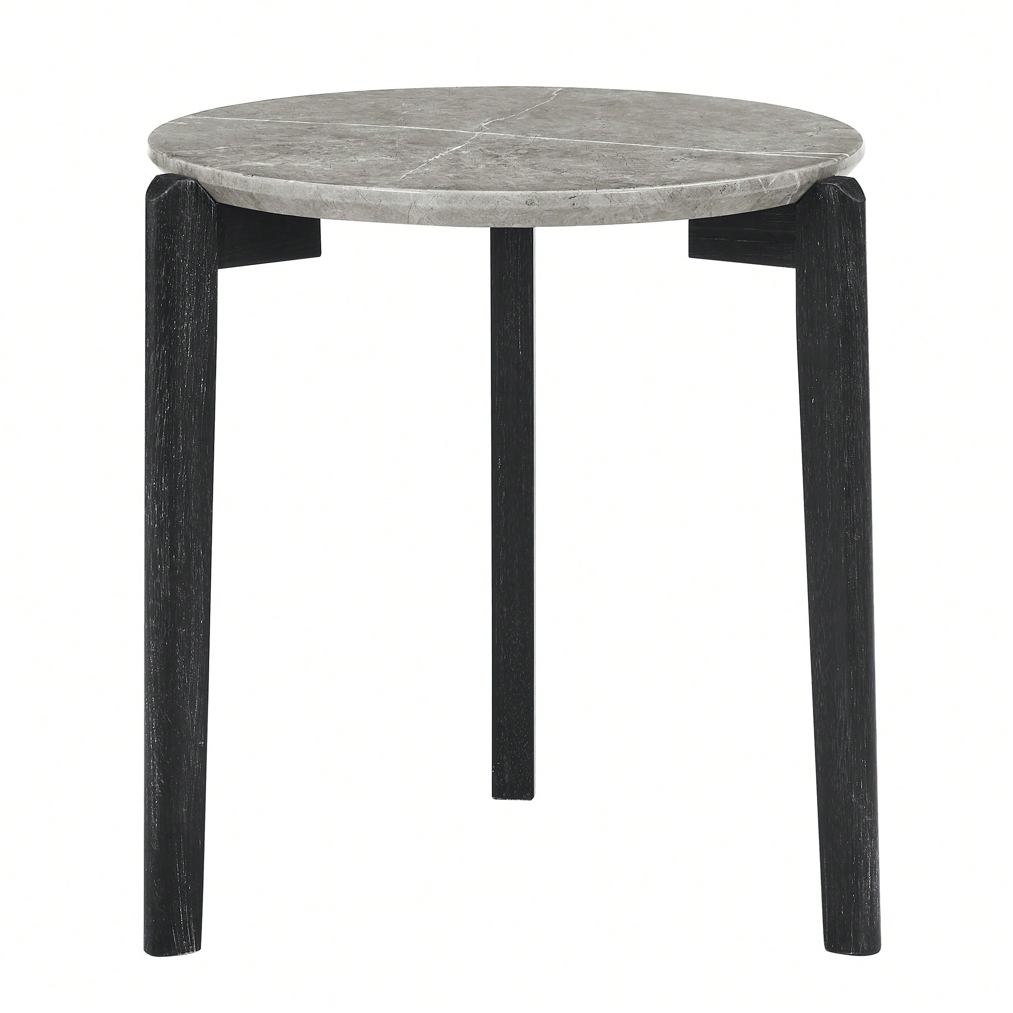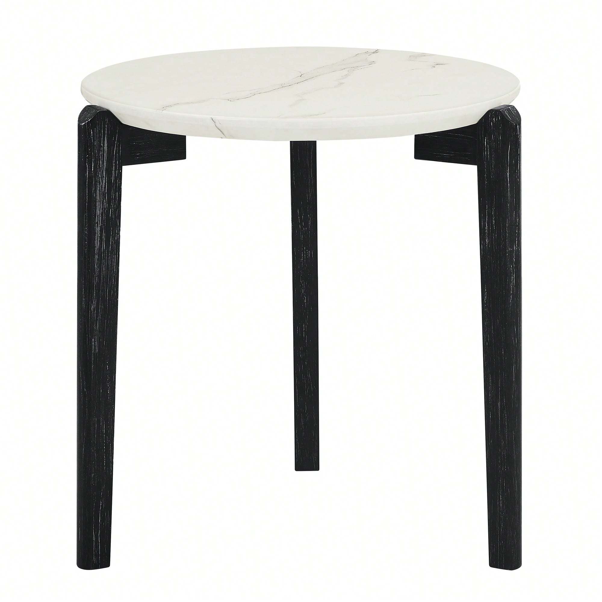 Modern 24 Inch Round Coffee Table With Imitation Marble Top And Solid Rubber Wood Legs For Living Room And Office