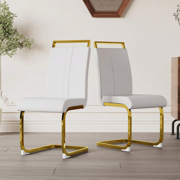 Modern High Back PU Faux Leather Dining Chairs with Golden C-Shaped Legs Set of 2 for Kitchen Dining Room Office Patio White