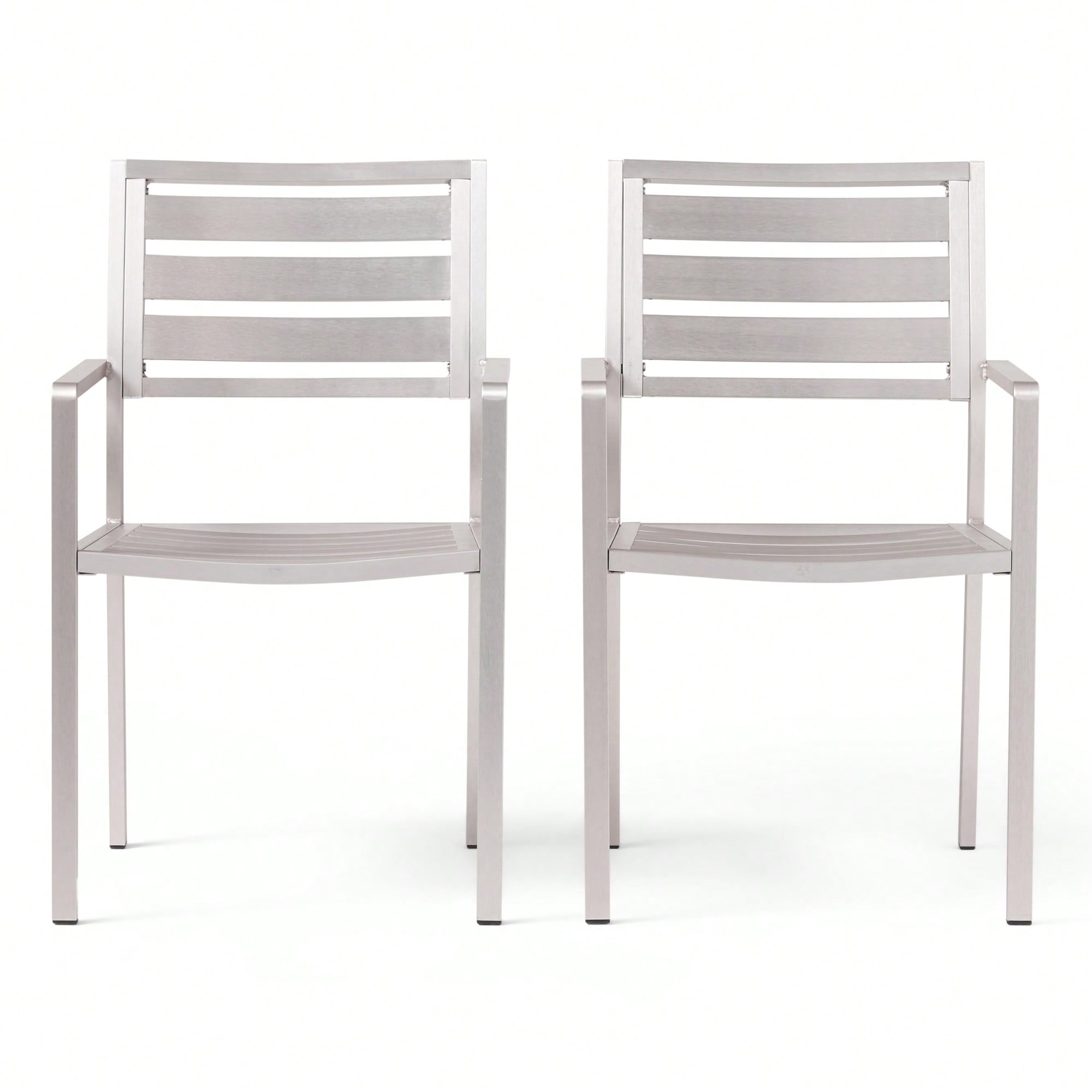 Contemporary Silver Aluminum Outdoor Dining Chairs Set Of 2 For Patio And Garden