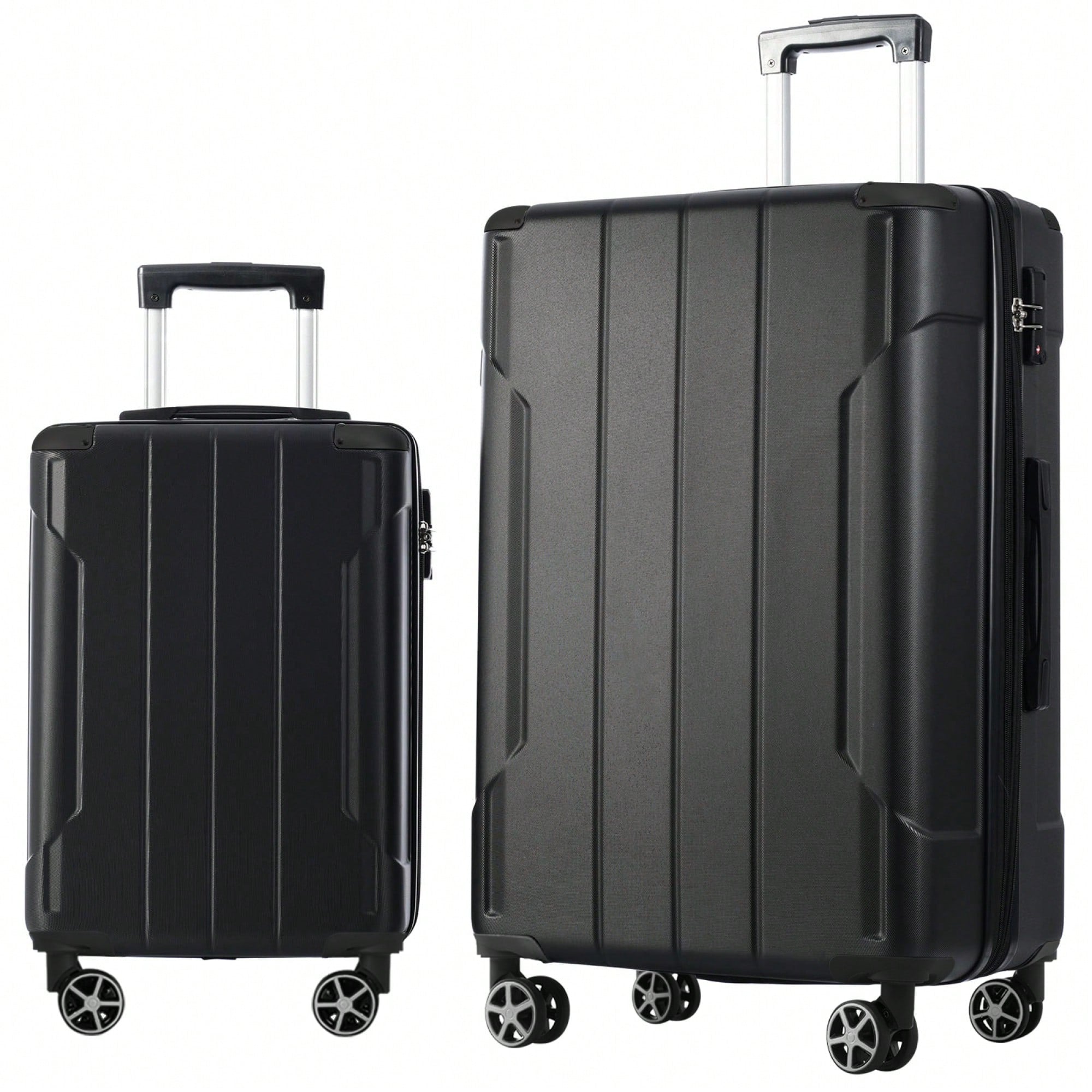 Lightweight Expandable 2-Piece Hardshell Luggage Set With Double Wheels Carry-On Suitcase 20 Inch And 28 Inch In Black