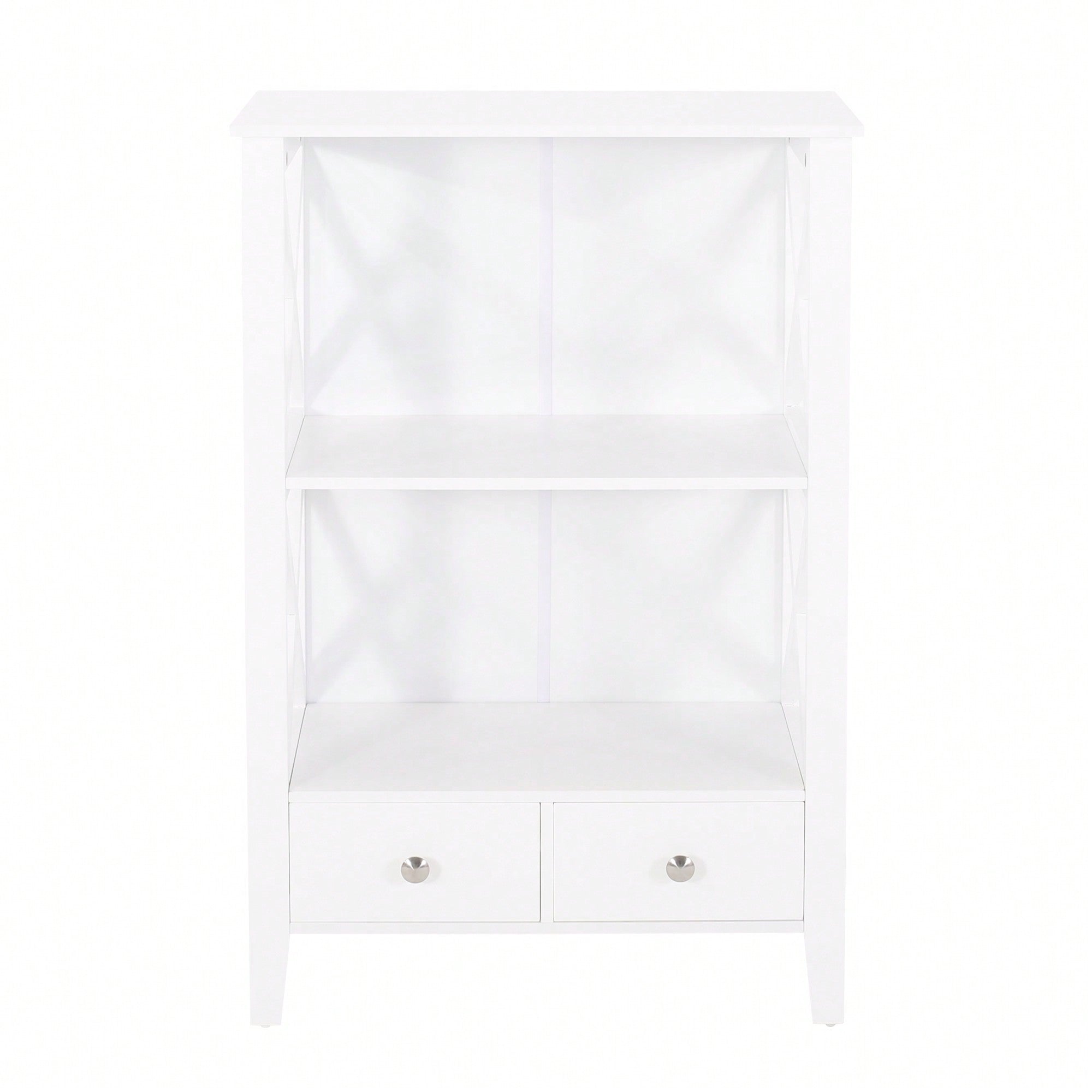 Regular price $141.99 USDSale price $141.99 USD Regular priceUnit price per$216.99 USDSale Sold out1. Features:- Modern cottage-side cross frame design - Two shelves and two bottom drawers for organized storage - Faux wood construction for a stylish and durable...