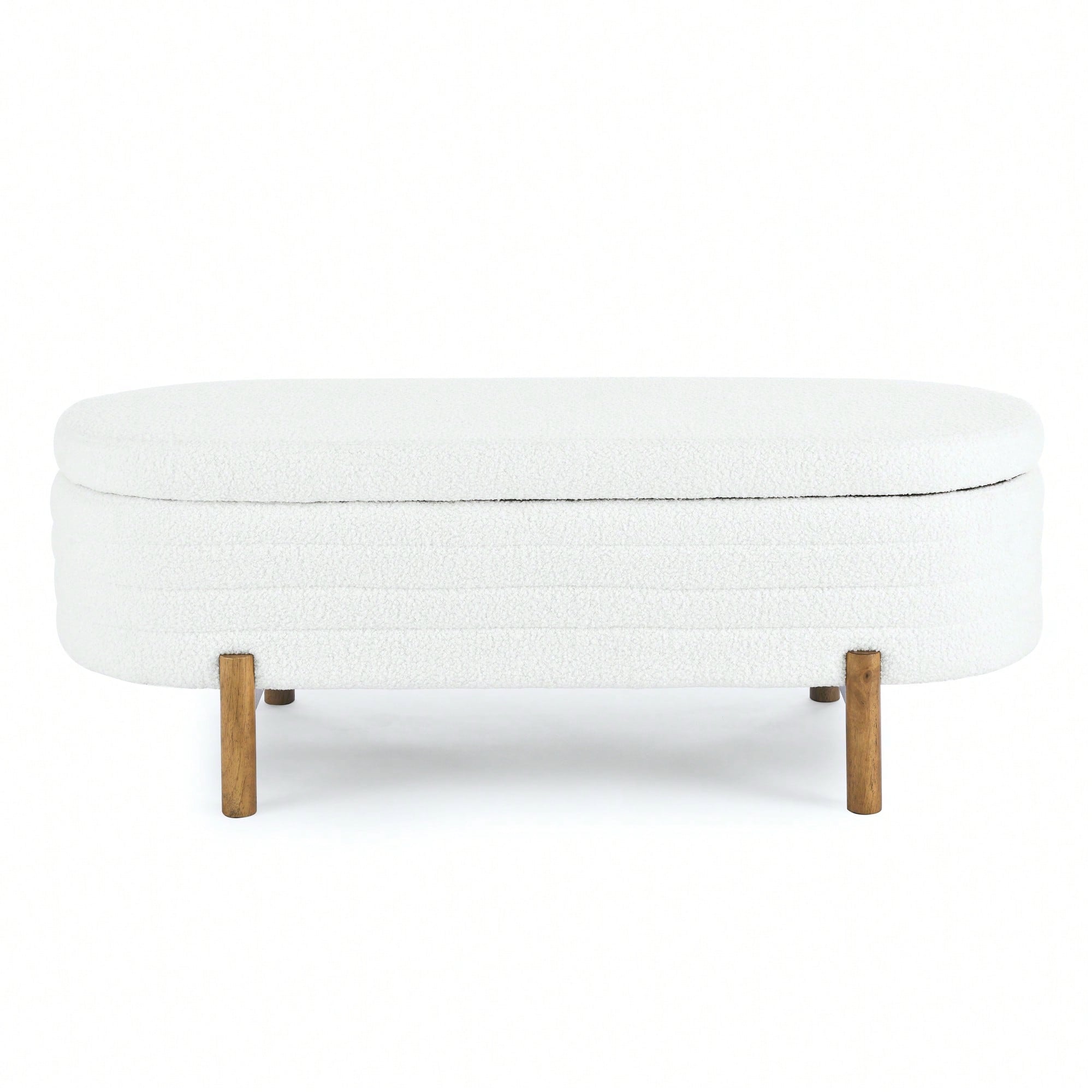 Elegant Long Storage Ottoman Bench In Boucle Fabric With Simple Grand Design In White