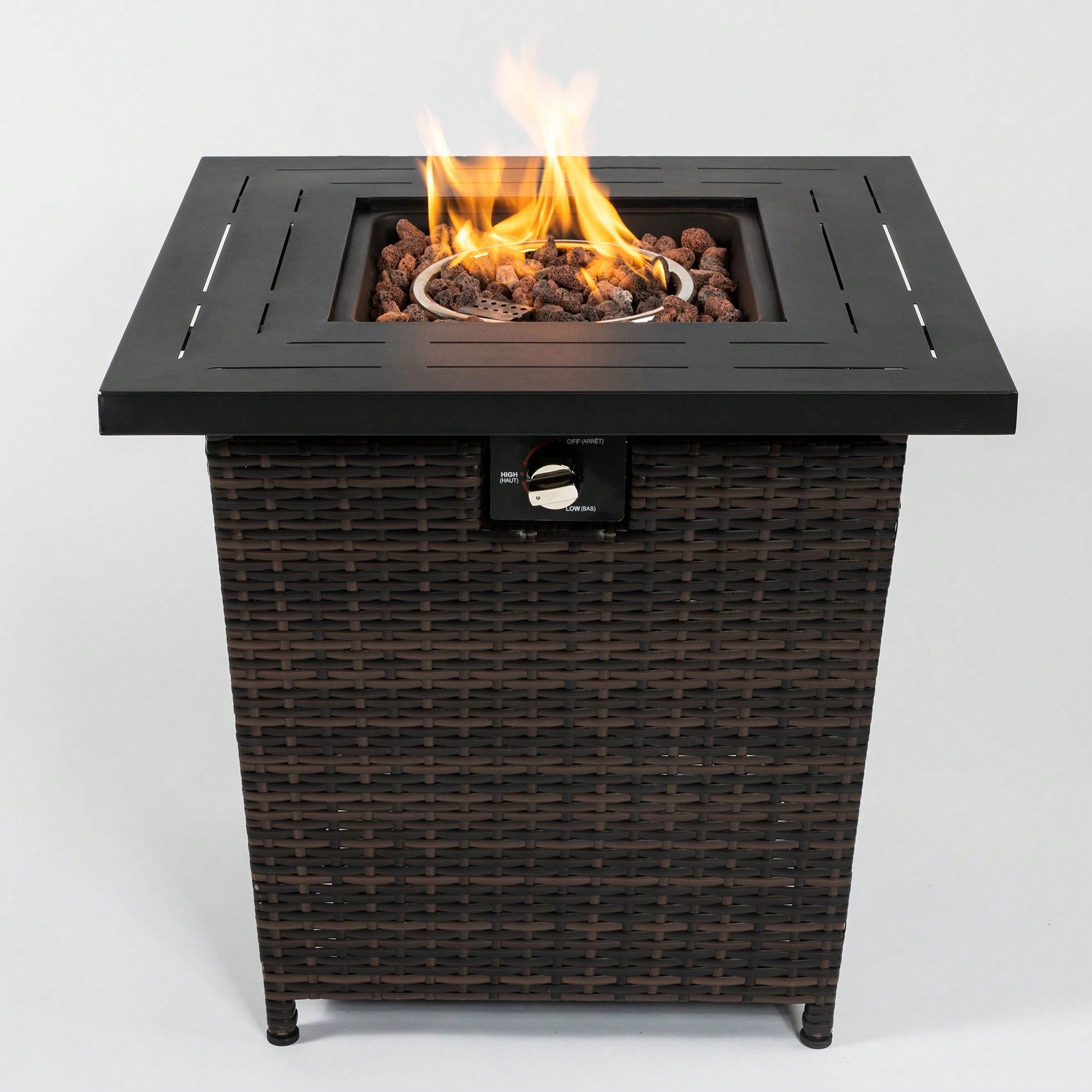 28 Inch Square Wicker Fire Pit Table For Outdoor Heating And Entertaining