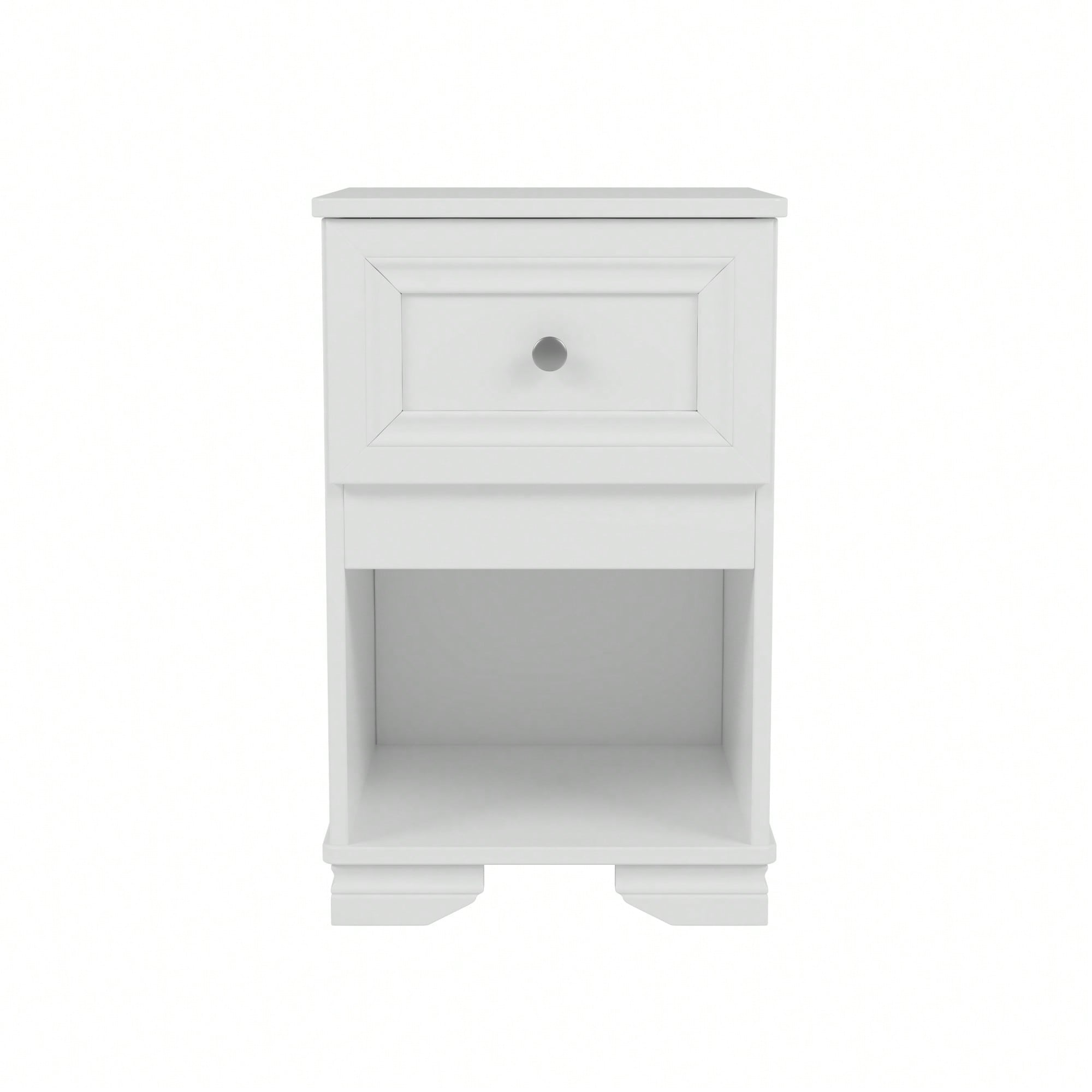 Elegant Retro Nightstand With Drawer And Open Shelf For Bedroom Classic Design In White With Metal Handle