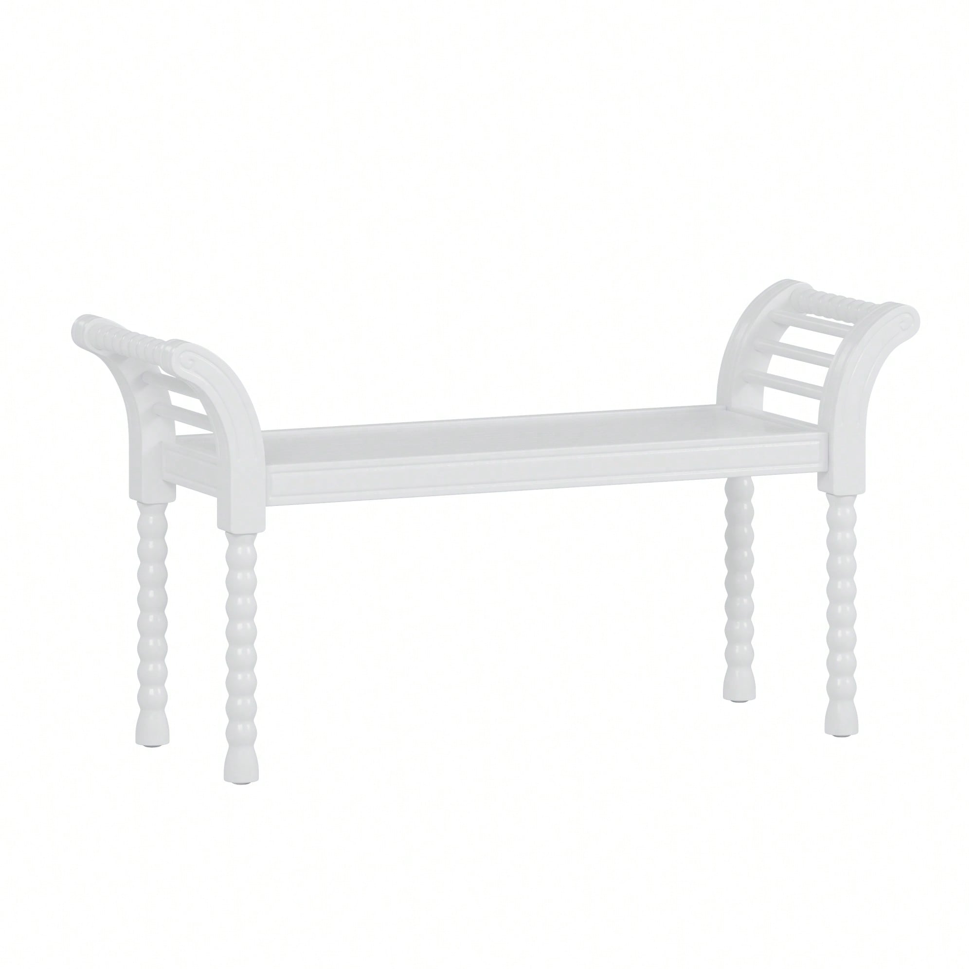 Elegant Vintage Bench With Turned Legs For Bedroom Or Living Room Decor In White