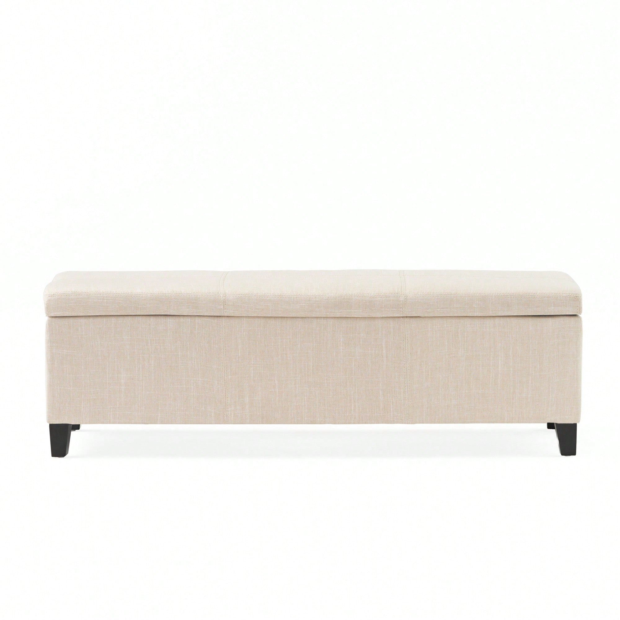 Stylish Linen Upholstered Storage Bench With Solid Wood Frame For Living Room Entryway And Bedroom Beige