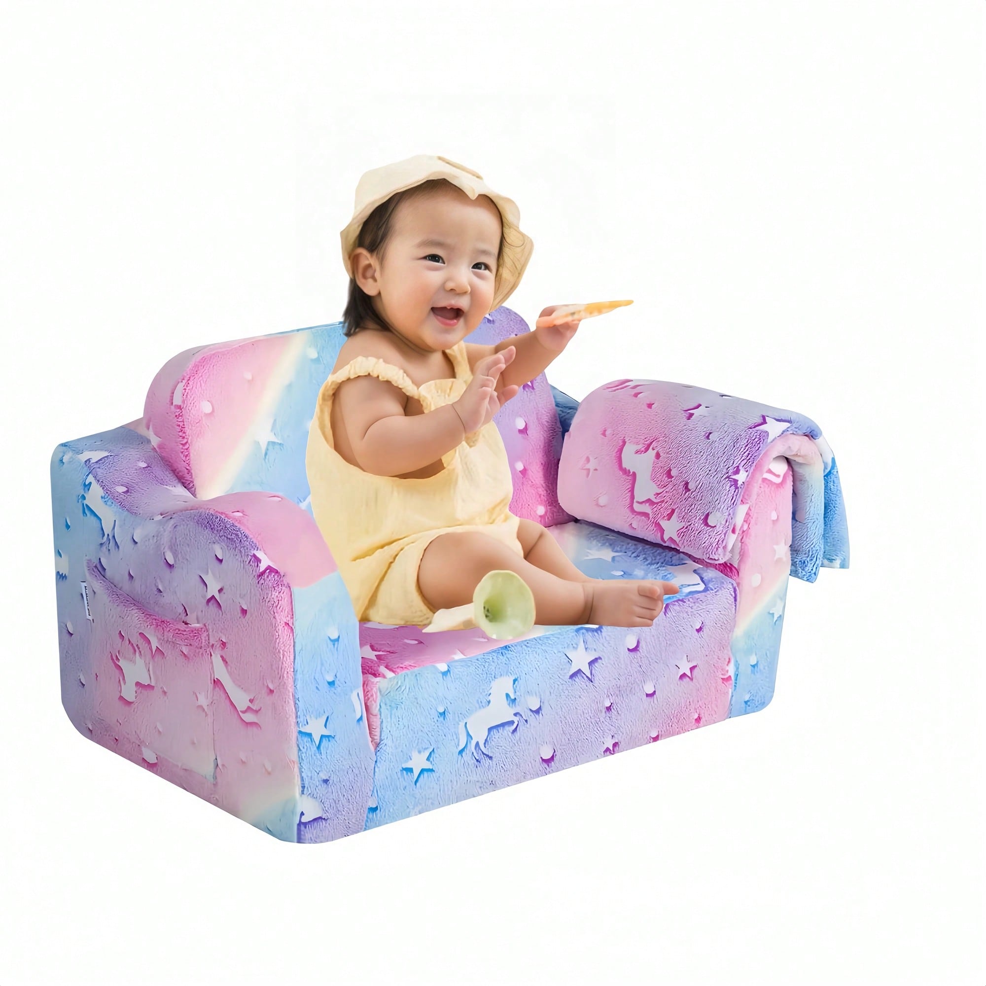 Convertible Kids Sofa And Lounger 2-In-1 Flip Open Couch Sleeper In Pink For Cozy Playtime And Naptime