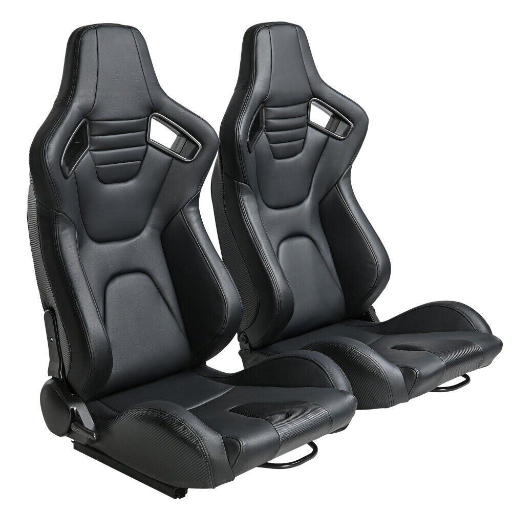 2Pcs Black Universal Racing Seats PU Leather Bucket Seats For Jeep Pickup Ford