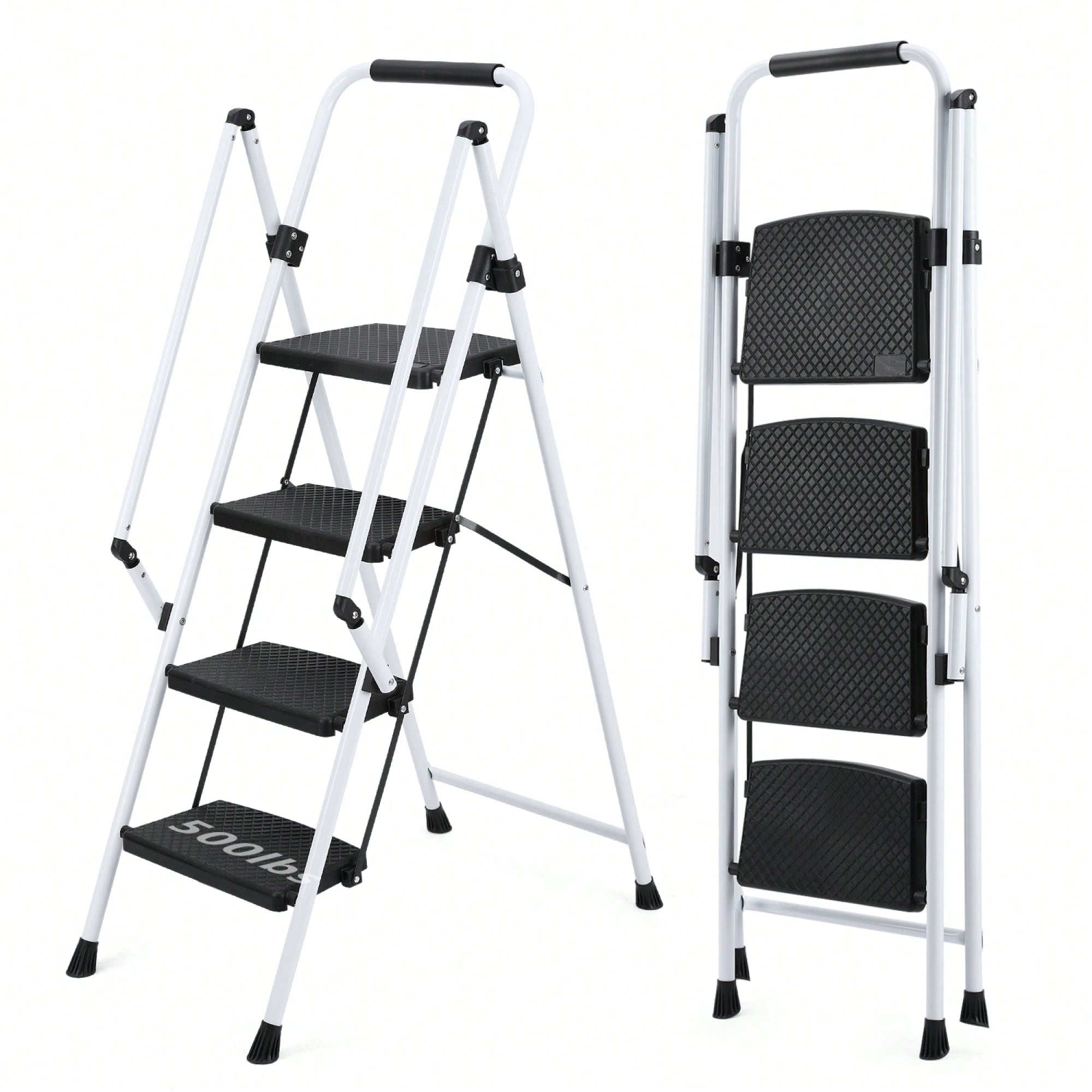 Lightweight Folding Four Step Stool with Anti-Slip Pedal and Safety Handle for Home Kitchen and Office Use