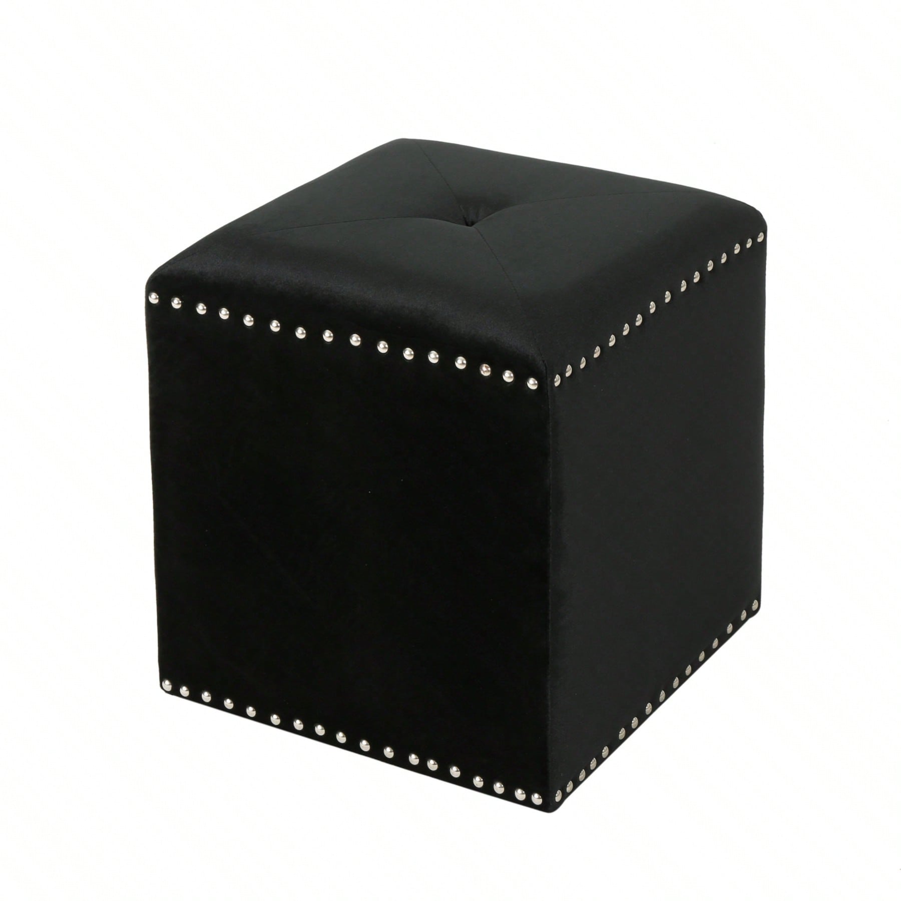 Luxurious Square Ottoman With Studded Trim - Velvet Upholstery, Extra Cushioning - Footrest, Extra Seating, Contemporary Style