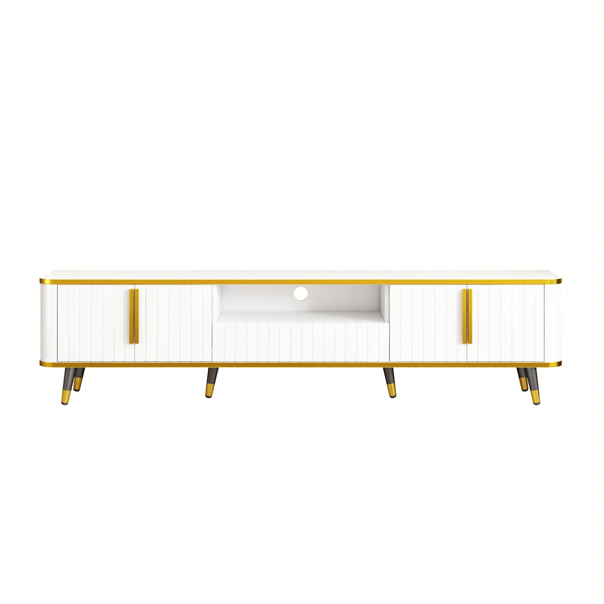 Luxury Minimalist TV Stand for TVs Up to 85 Inches with Open Shelf, Cabinets and Drawers, Stylish Media Console for Living Room in White